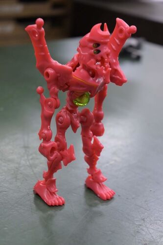 今回は『ほねほねゲリオン第二弾 2号機』の改造の話です。 はっきり言ってこのシリーズは人気ないんですよね・・でも私は大好きののでノリノリで行きます(笑) OK(スーパーマーケット)で300円で買ってきました。 膝と肘の関節がはめ込んでいるだけで…