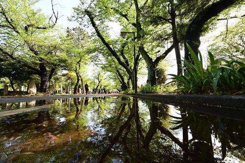 ルンルンお散歩♪春になると気持ちが上がりますね 春じゃなくてもいつも元気だったよね 雨上がりにリフレクション撮影ごっごです 雨上がりに急激に晴天なった良いタイミングでした 都心の八重桜も終盤になってきました❗ 日暮里『長明寺』の枝垂桜はすっかり緑…
