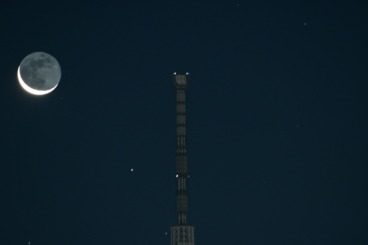 朝、外を見たらスカイツリーと月がいい感じじゃないですか!