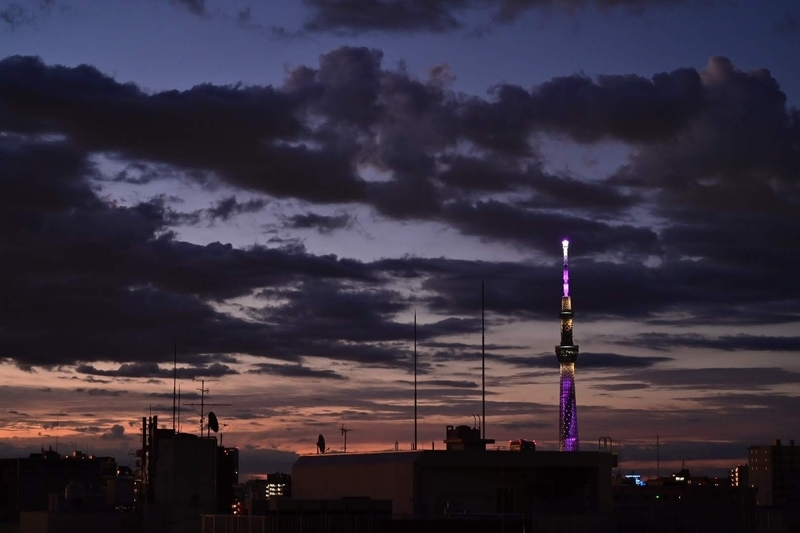 今朝早く、いつもは消灯しているスカイツリーが点灯してました。