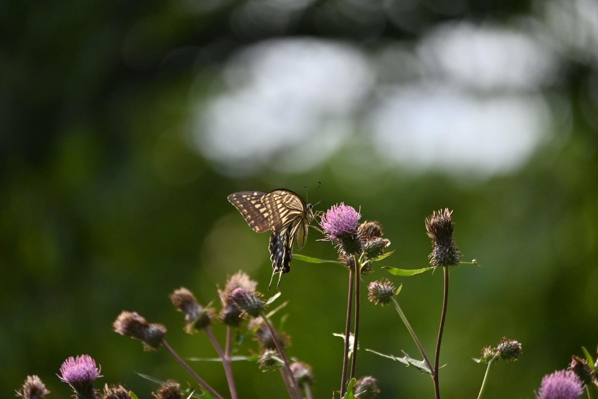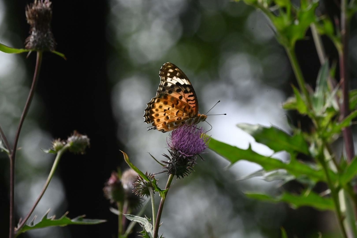 アザミに集まる蝶です。これから秋になると大量に確認できるようになります。