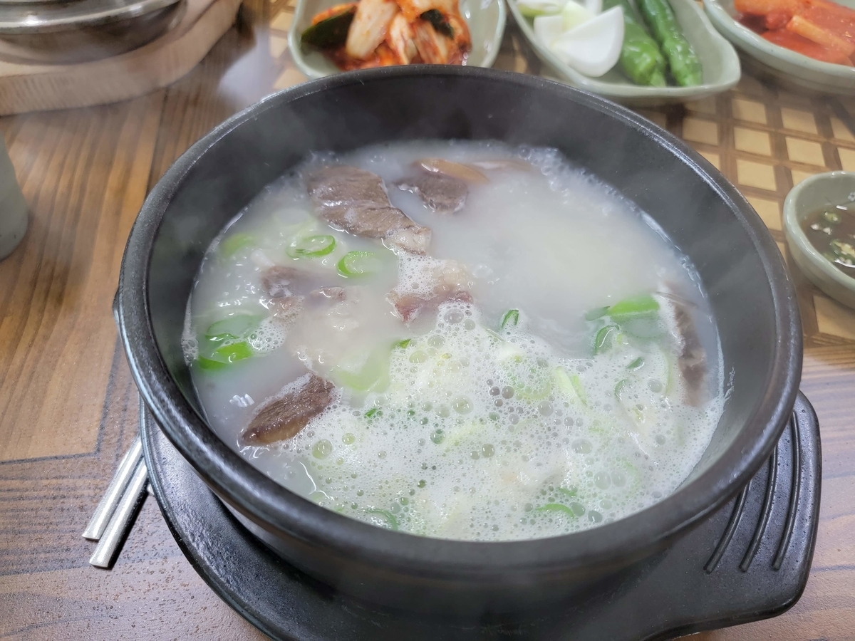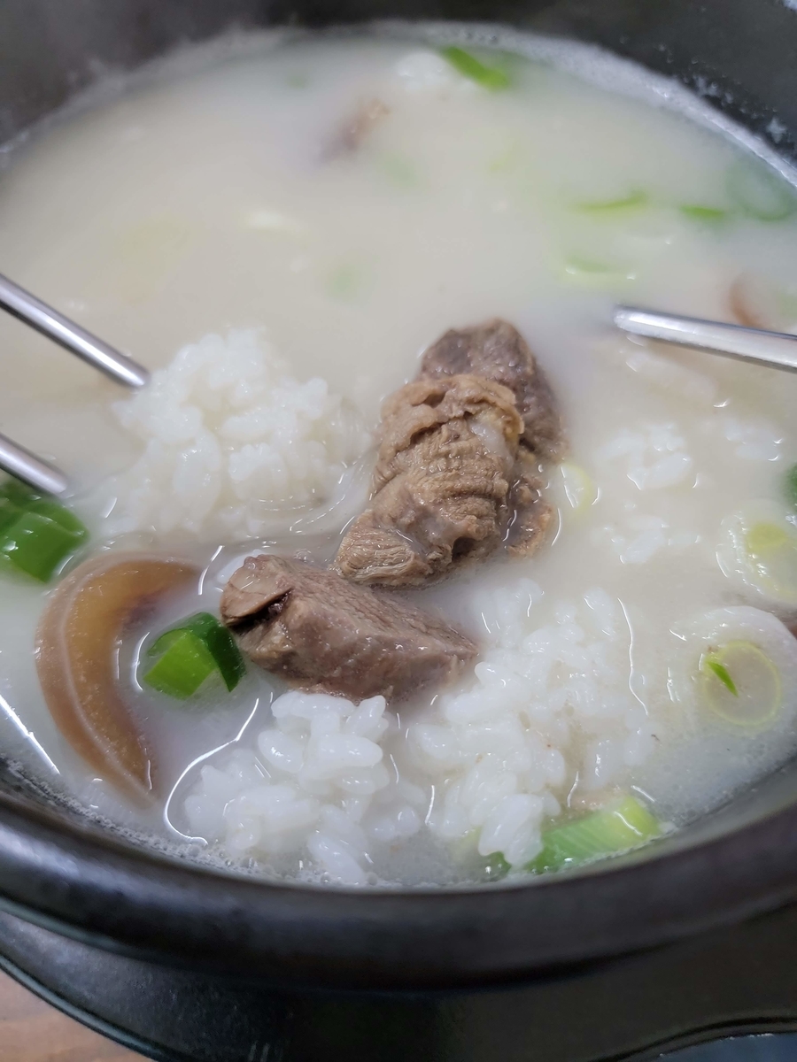コムタン+ライスは少々あっさりですが牛肉の香りを感じてとても美味しいです😊