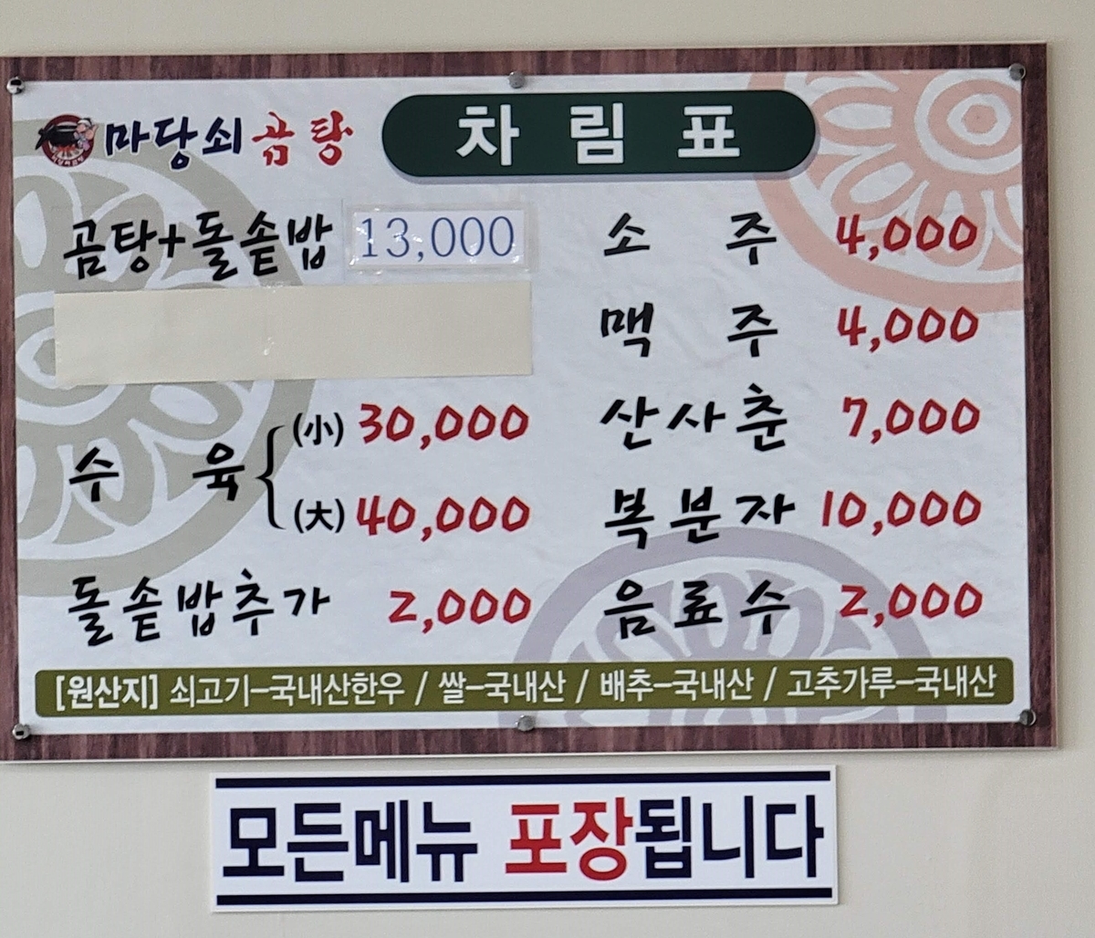 左上のメニューが『コムタン+ライス』です。リアルタイムgoogle翻訳を使えばすぐに分かります😊