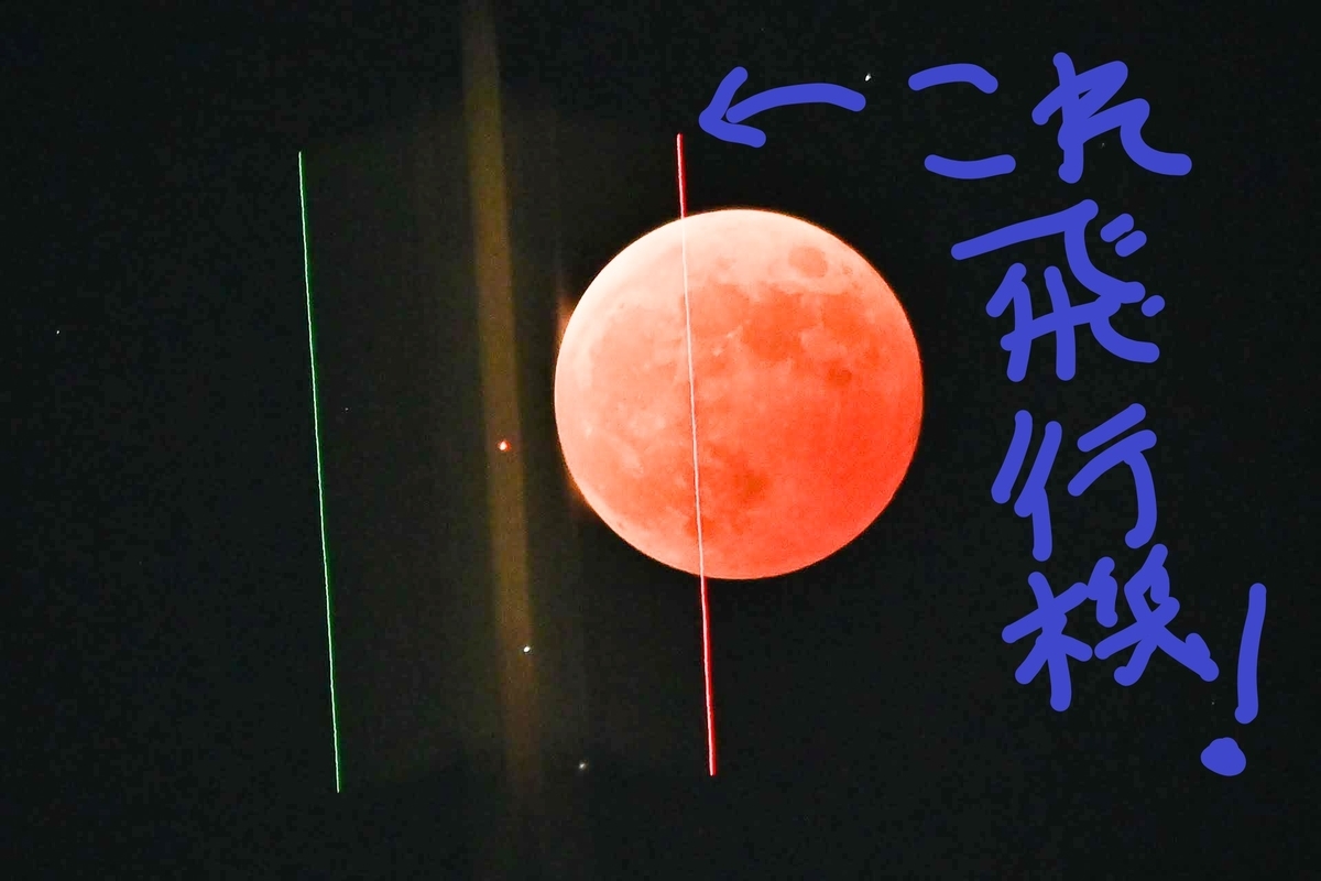 先日、月食撮影で遊んでましたら偶然飛行機が入りました❗