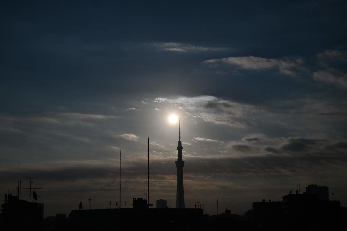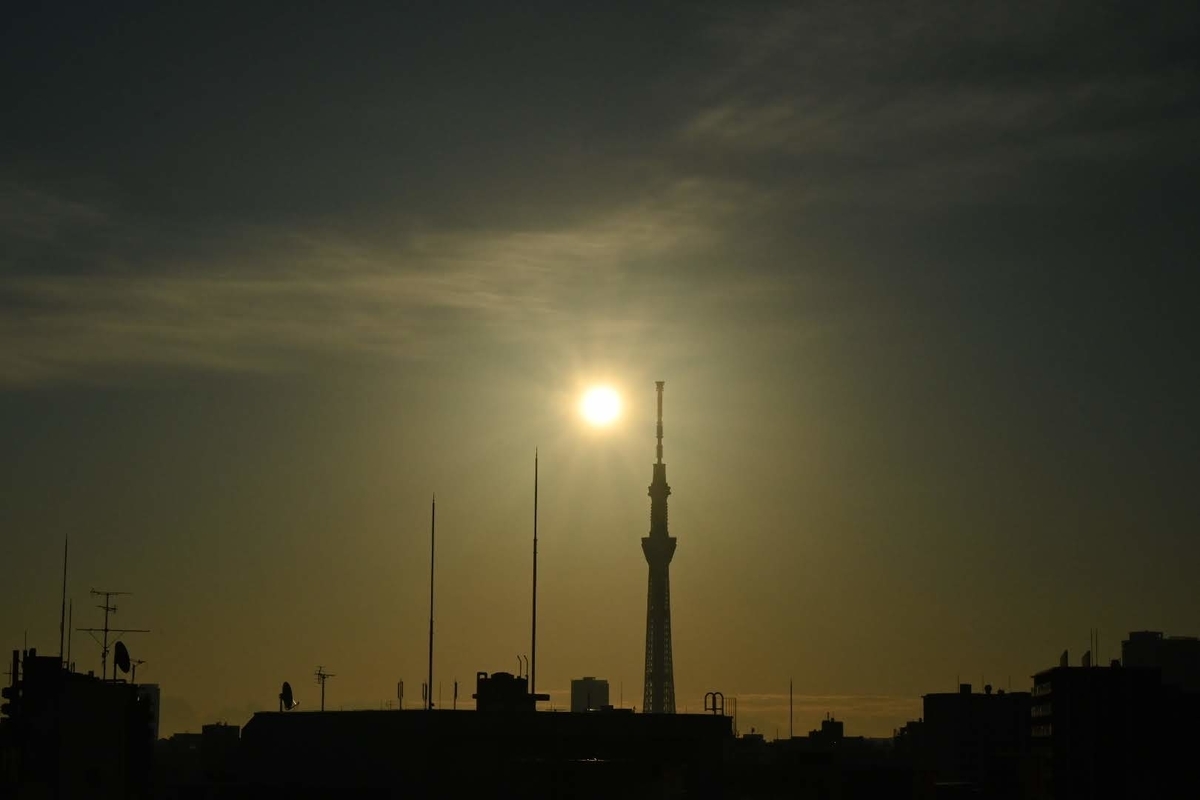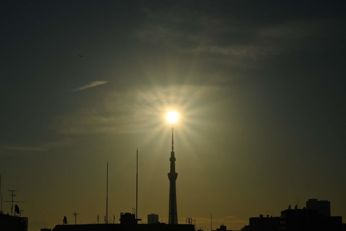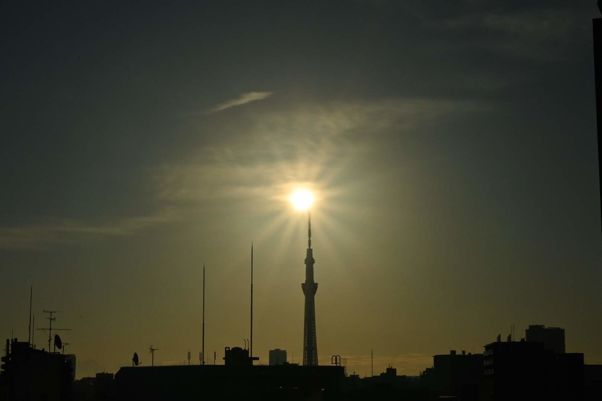 どりゃー❗完璧にスカイツリーの上に太陽を載せたぜ😊