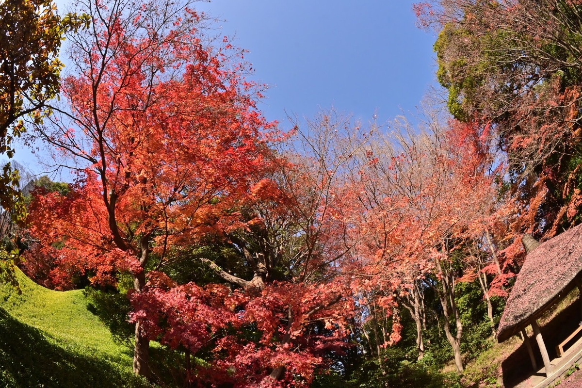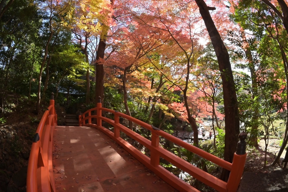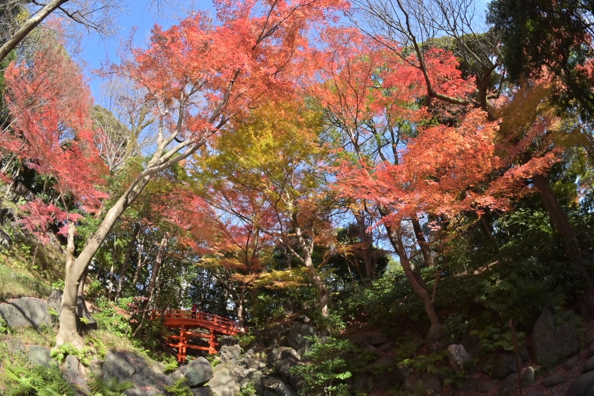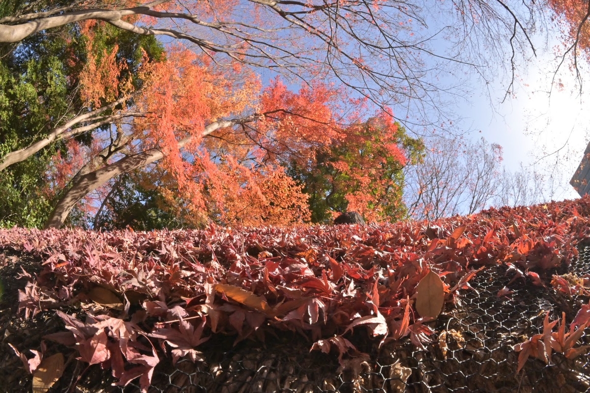 入口付近の紅葉です。かなり広い範囲ですが魚眼だと左右が切れました😊