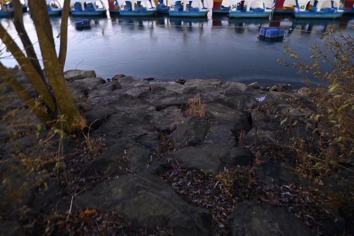 更に川に近づきます。岸付近は凍り付いてますね(笑)