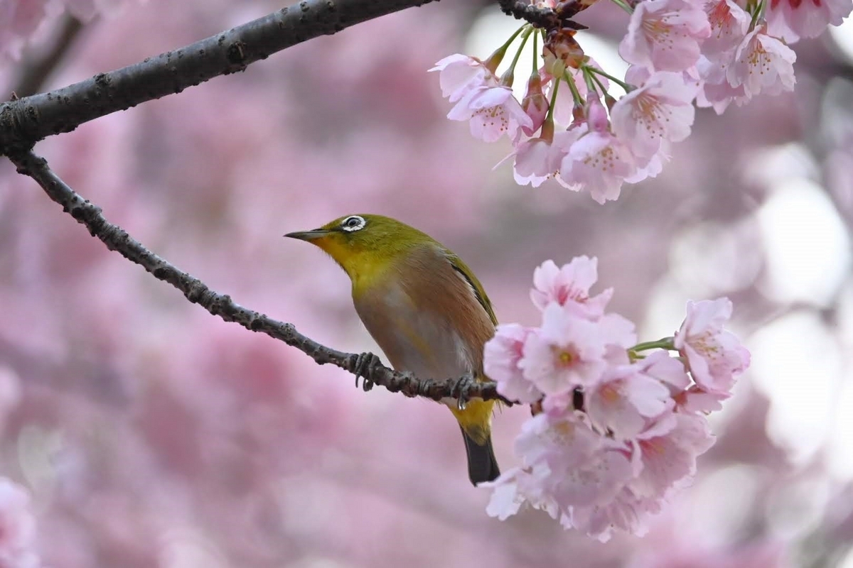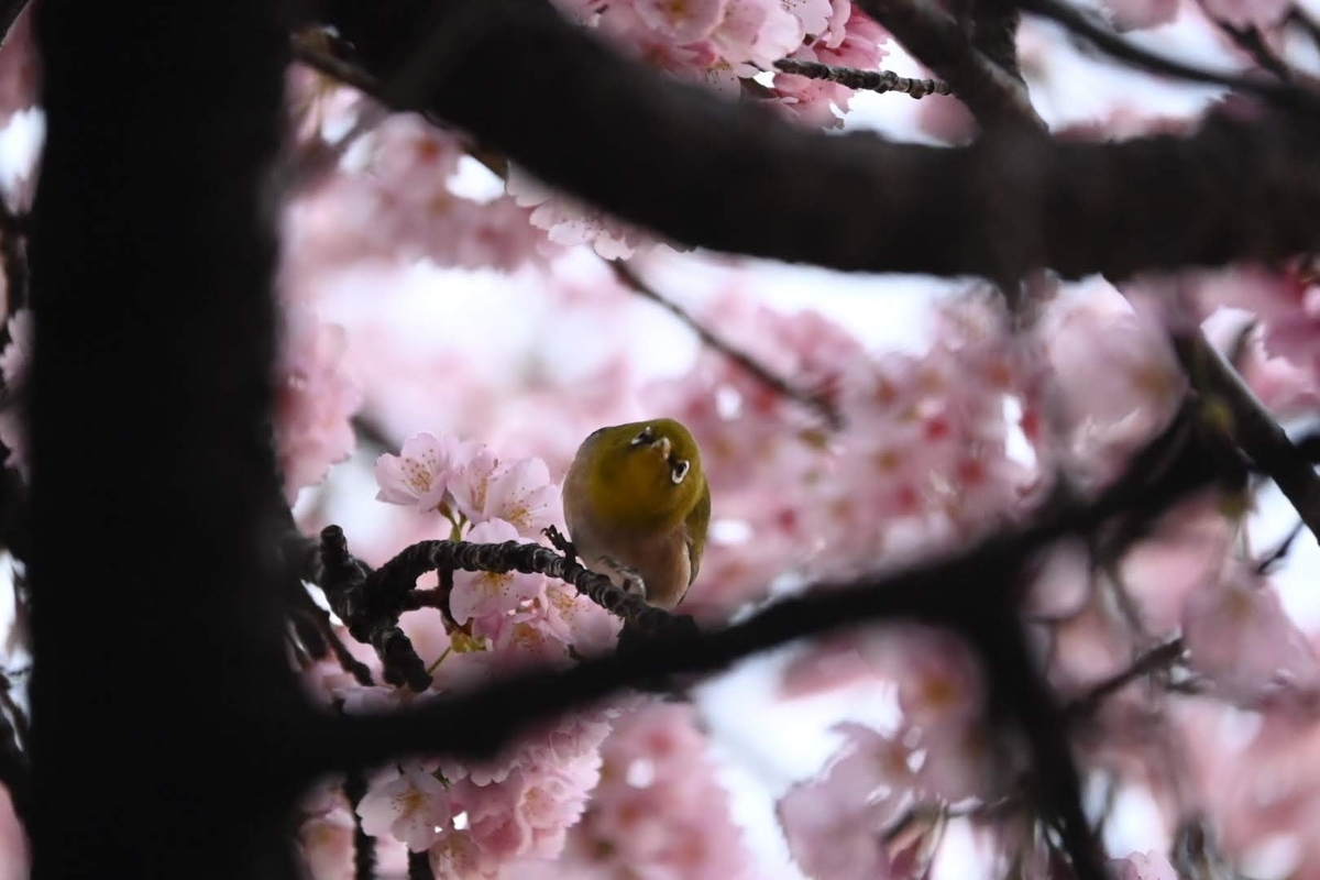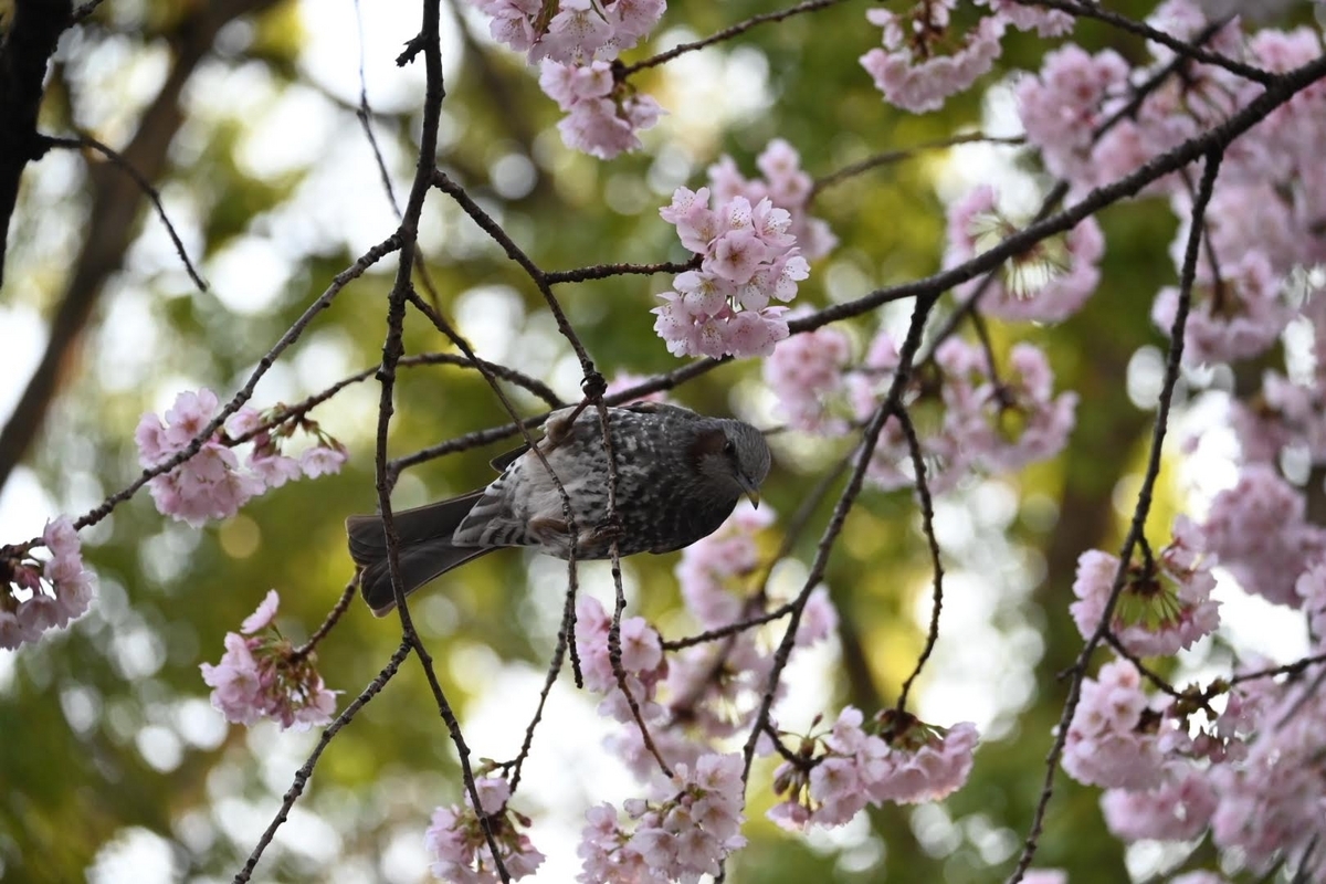 上野公園の早咲き桜には鳥が沢山やってきます❗