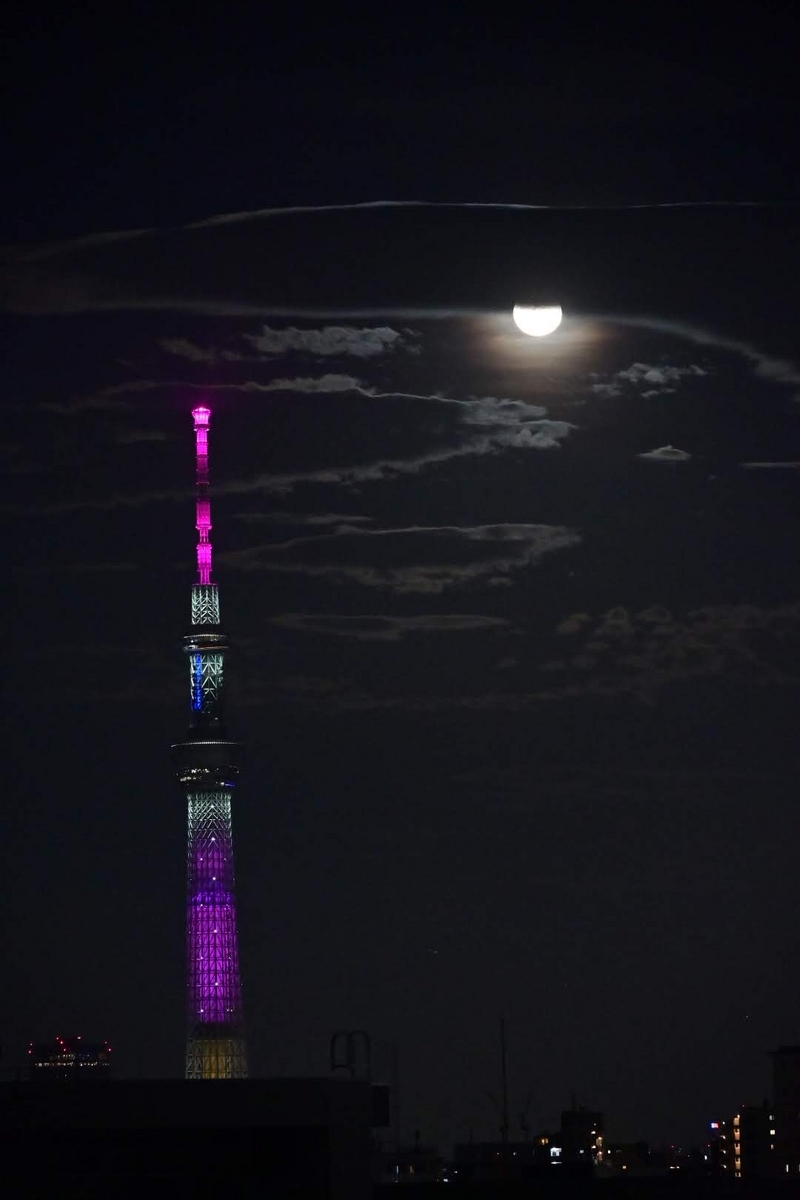 2023-05-10 🌆スカイツリーと満月 スカイツリー 先日、スカイツリーと月を合わせて撮影が出来たので紹介します😊 雲に月が隠れてましたが・・ 月が出てきました❗ スカイツリーはGWの特別色でライトアップが刻一刻と変わっていきます😊 そして月は隠れました。短い時間ですが楽しい撮影が出来ました❗ 撮影機材:Z 50 + 『NIKKOR Z DX 50-250mm f/4.5-6.3 VR』(手持ち撮影) ランキング参加中写真・カメラ にほんブログ村