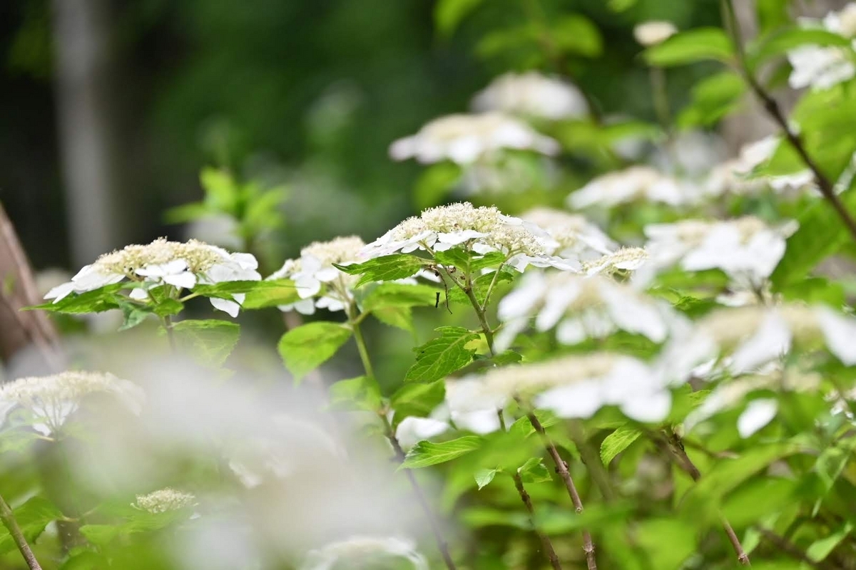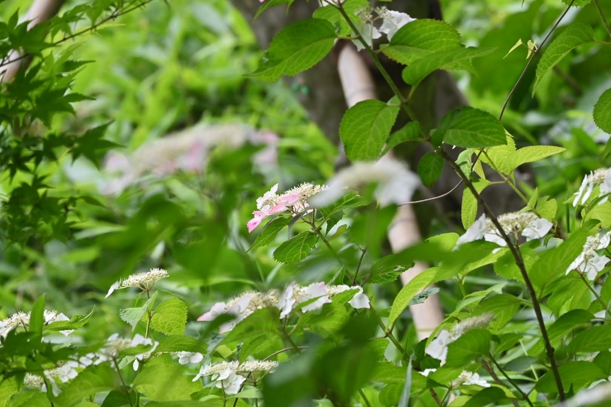 庭園奥には上品な感じのガクアジサイが咲いてます😊
