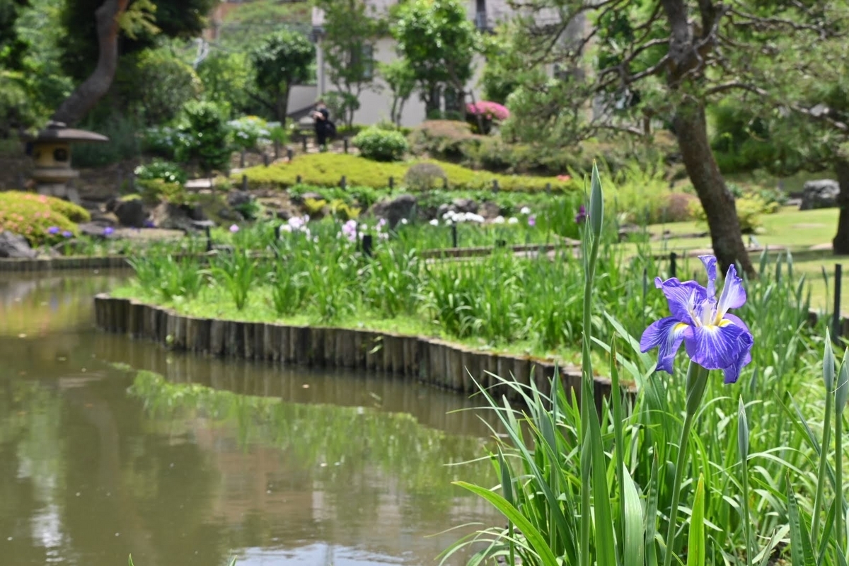 池の周りに紫陽花と花菖蒲が咲いてました😊