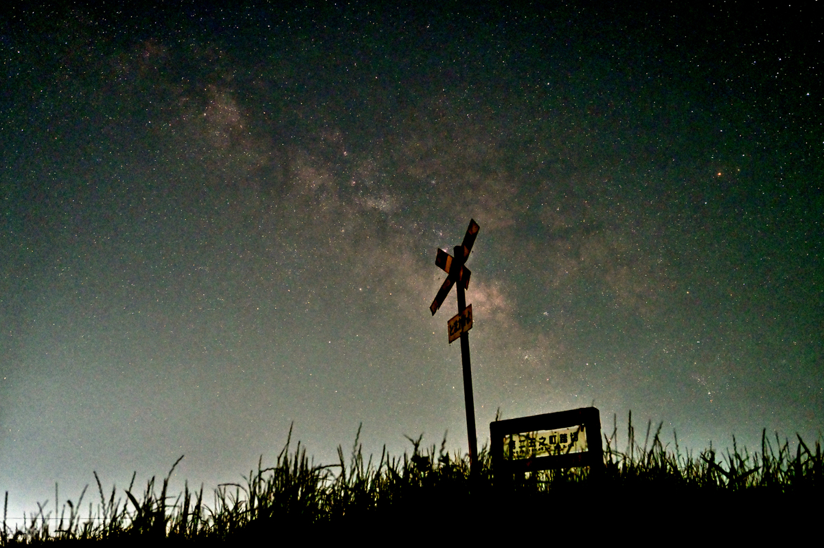 撮影日時ではちょっと早い時間の撮影になりました。 夏にしては大気が綺麗な日に訪問しましたが地表近くのカスミが邪魔してそれほど天の川は見えない状況です。 |