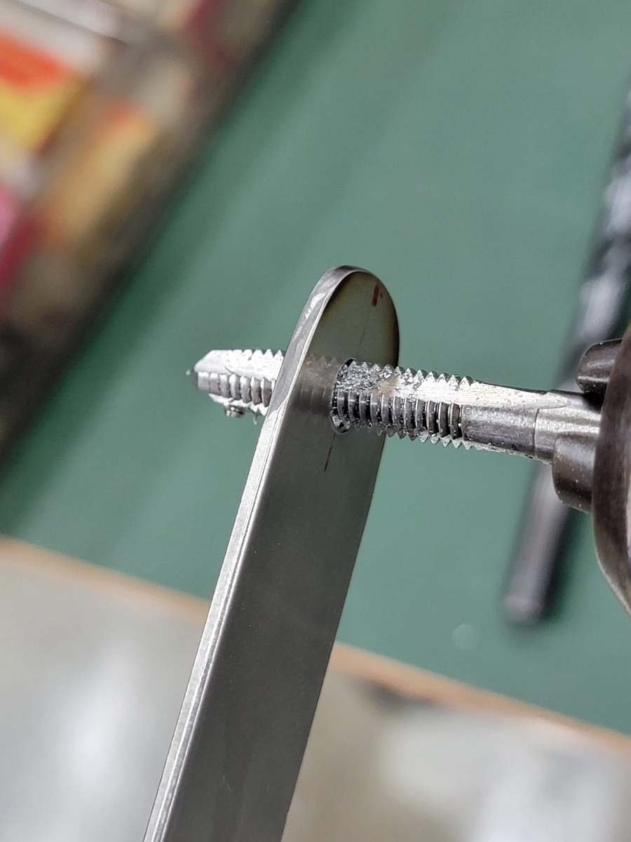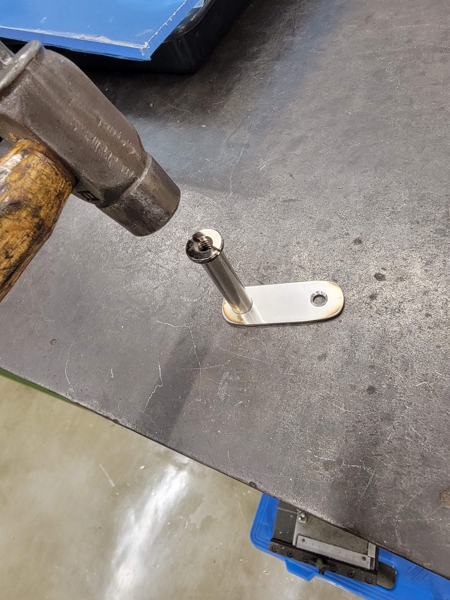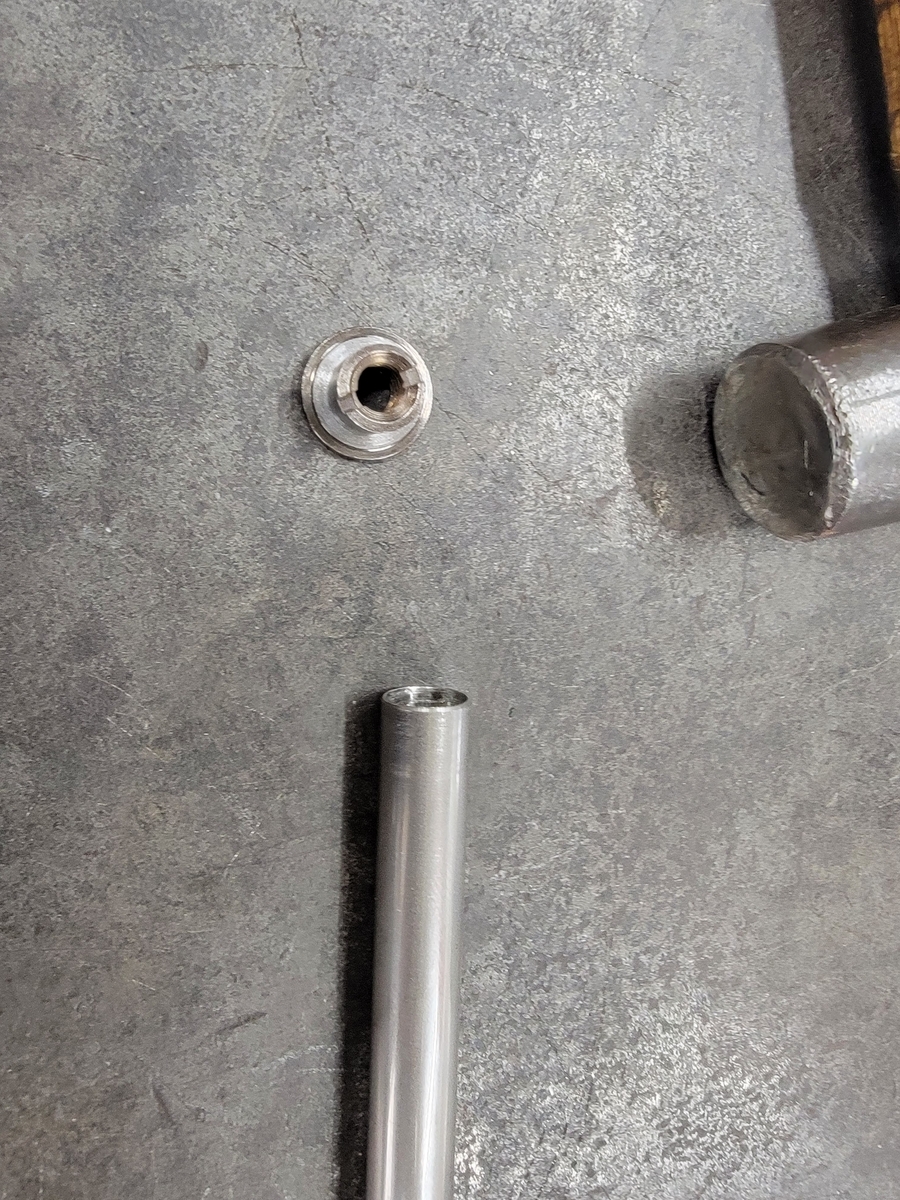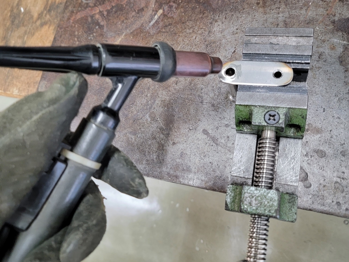ネジをパイプに叩き込みます(カシメでネジをパイプ内部に固定)