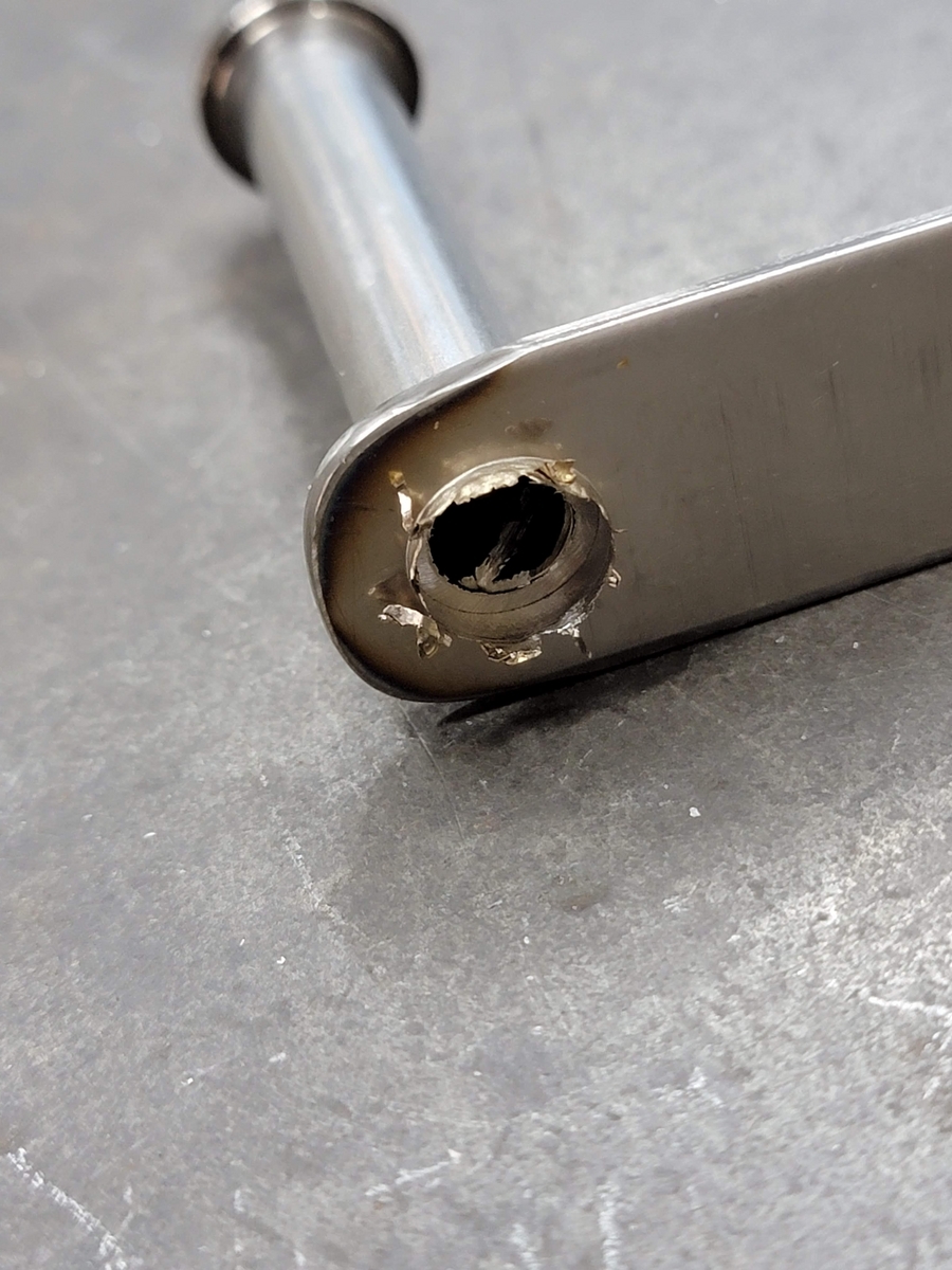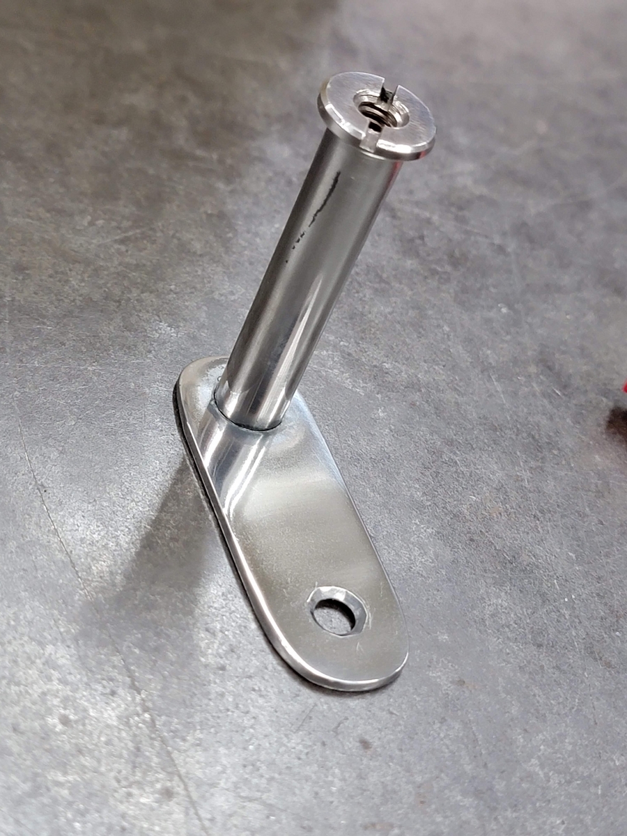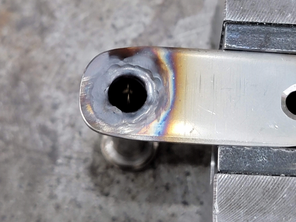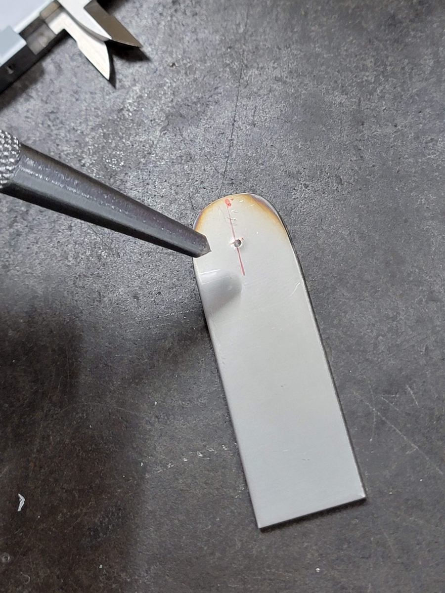 ネジをパイプに叩き込みます(カシメでネジをパイプ内部に固定)