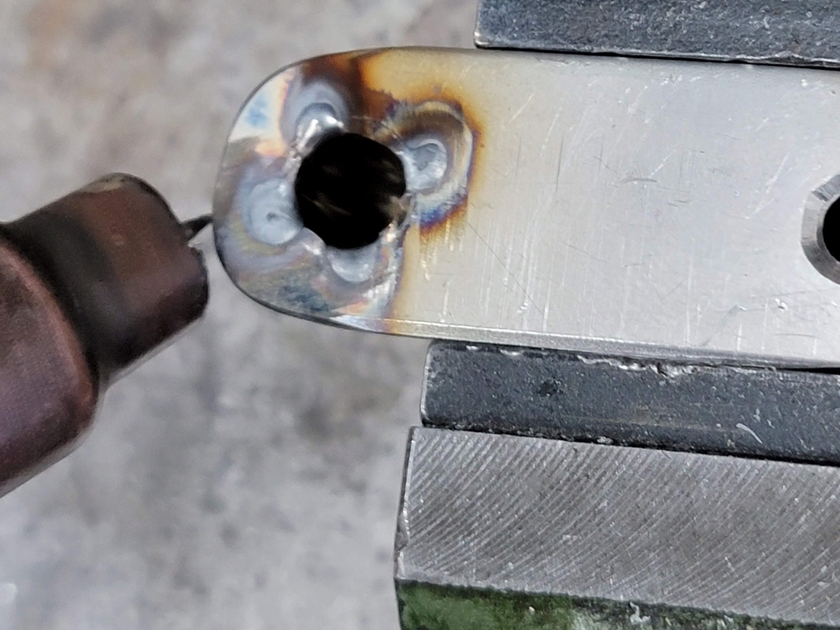 アルゴンガスを用いた溶接、溶接中に不活性ガスを吹き付けて酸化を防ぎます。