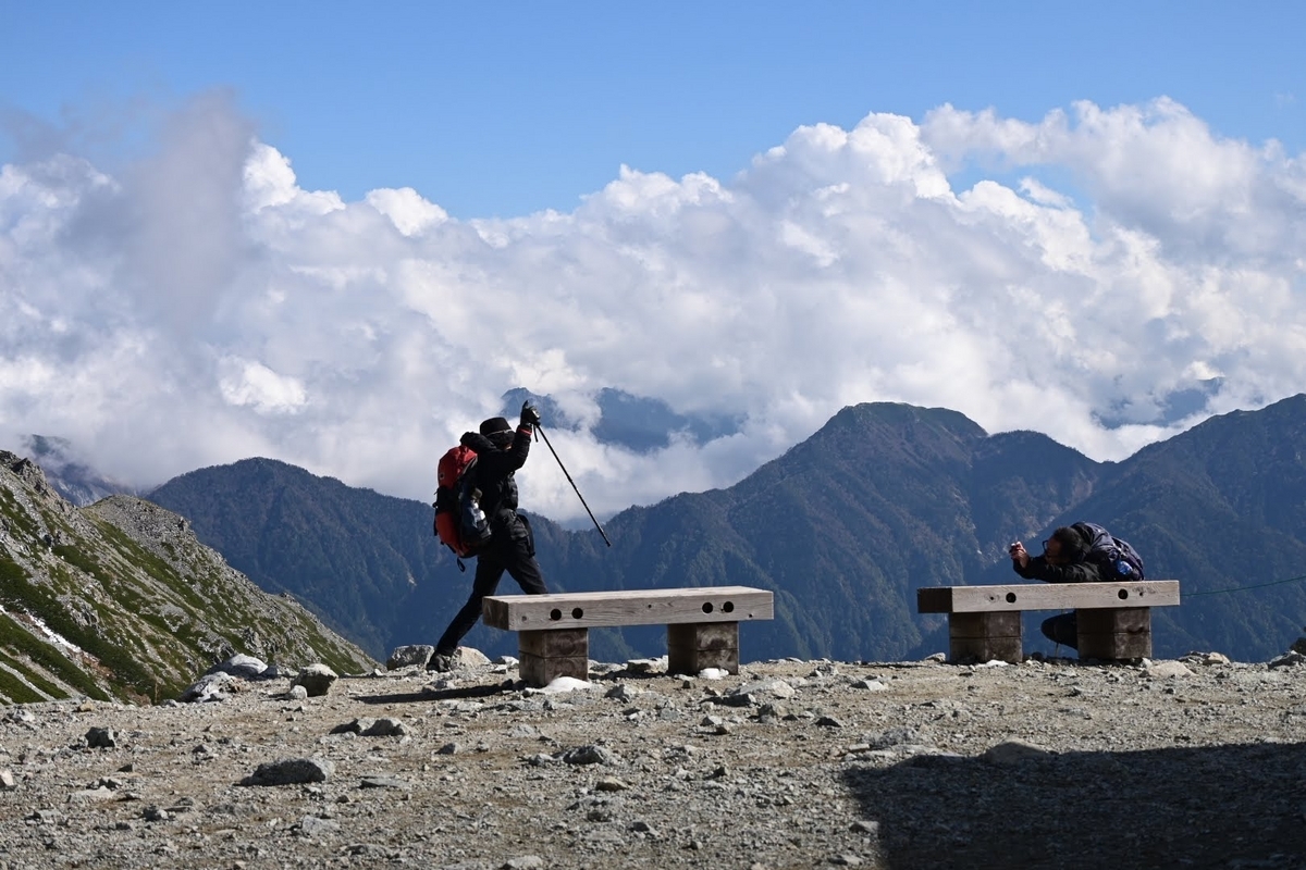 いつもミラーレス一眼を2台ぶら下げての登山、おじさん頑張るねー(笑)