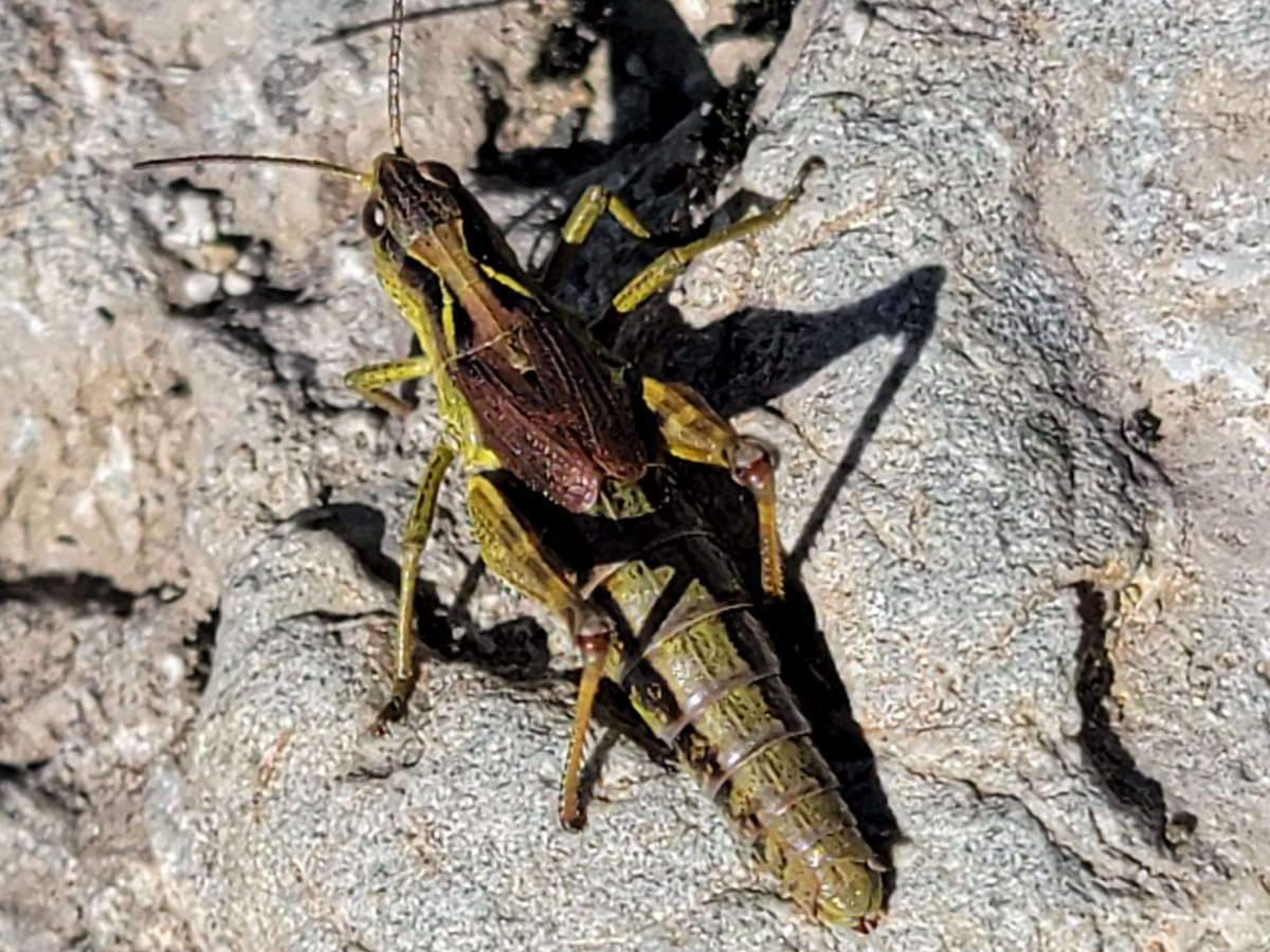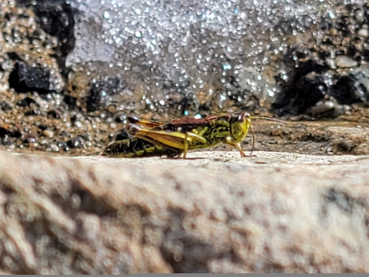 雪がある中で生きているバッタを見つけました❗