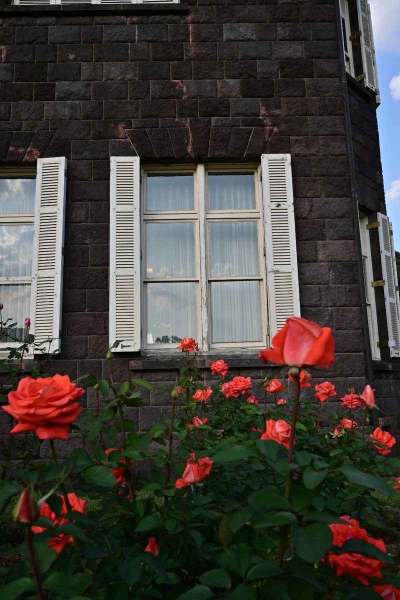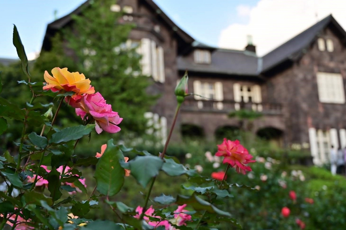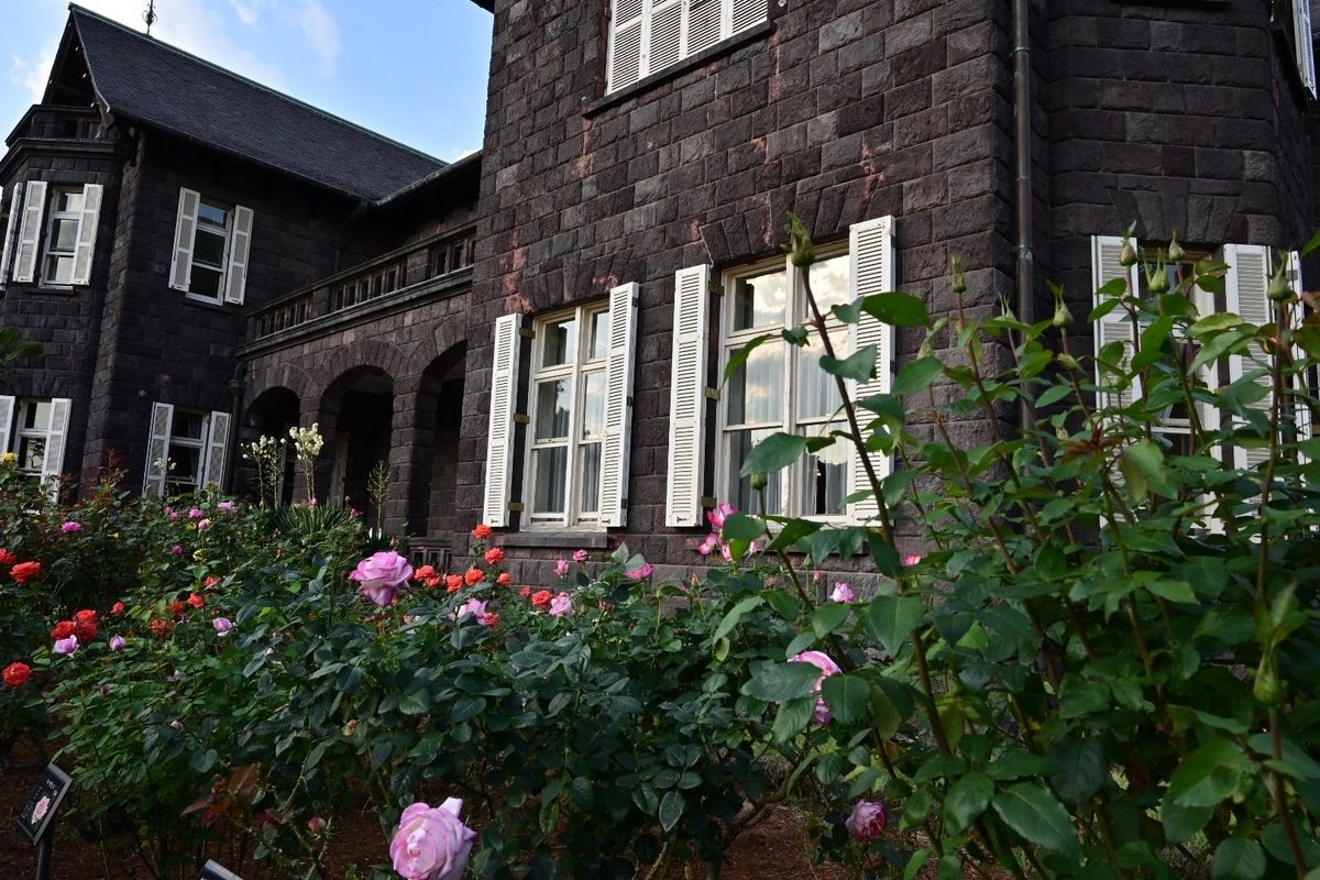洋館が一部改修工事中ですがバラ園側からはそれほど気になりません。