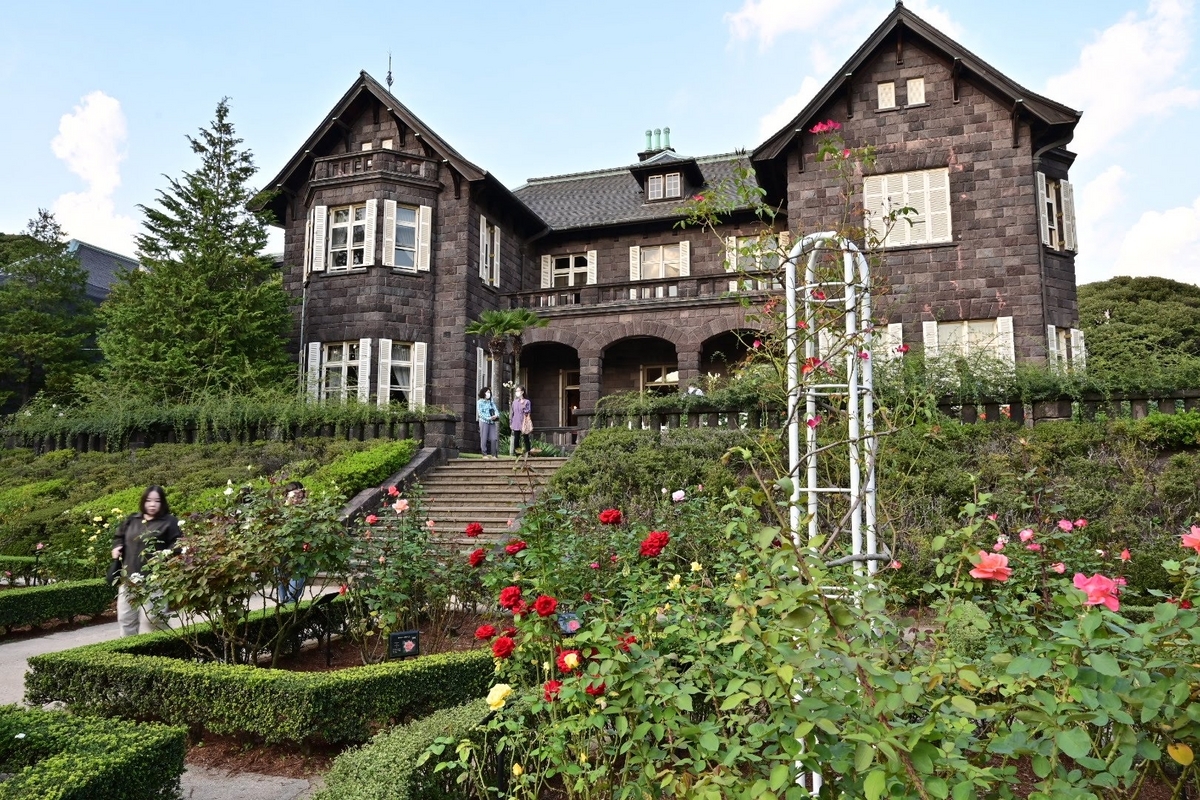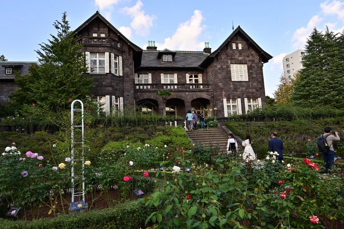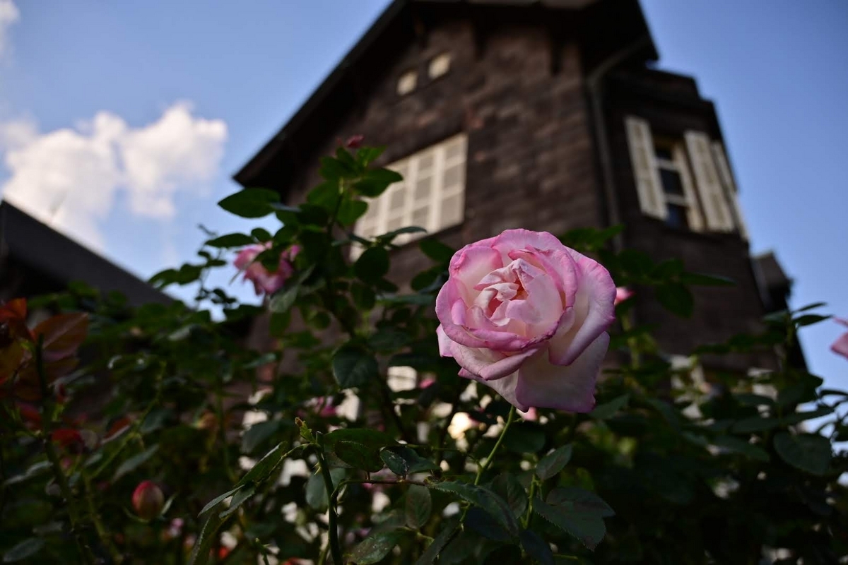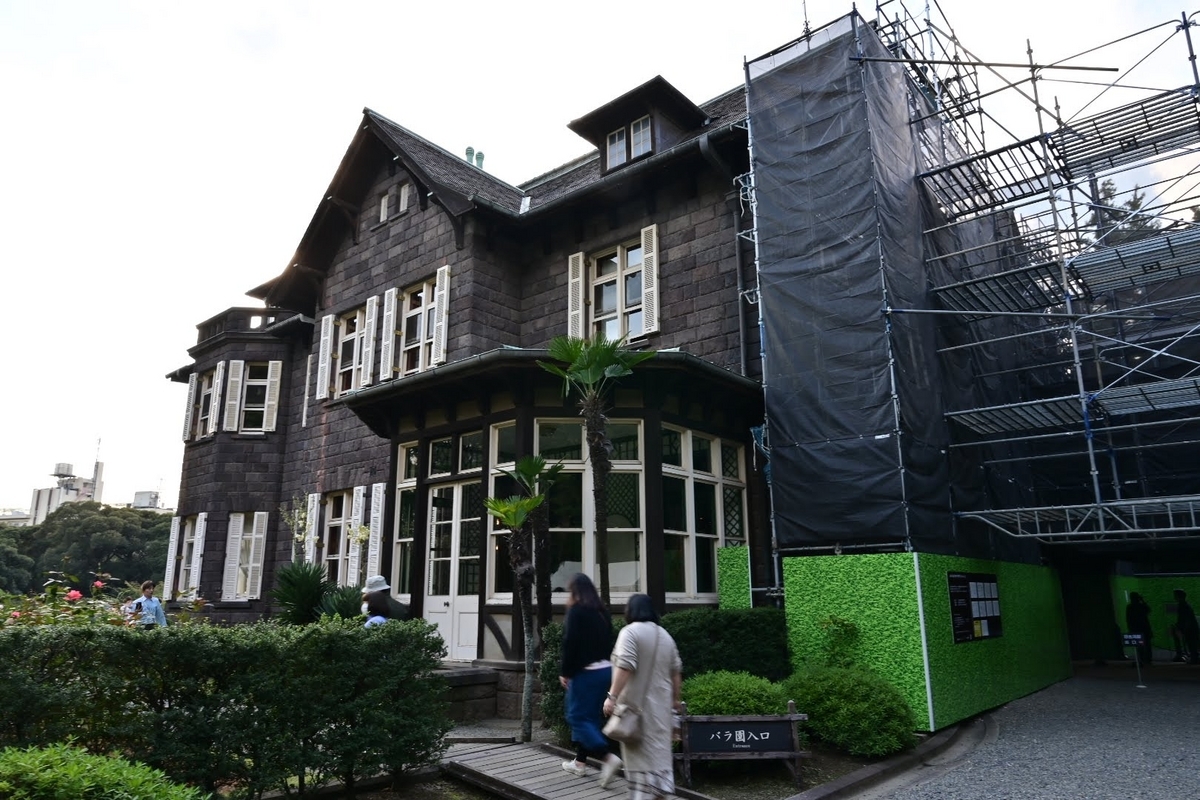 洋館が一部改修工事中ですがバラ園側からはそれほど気になりません。