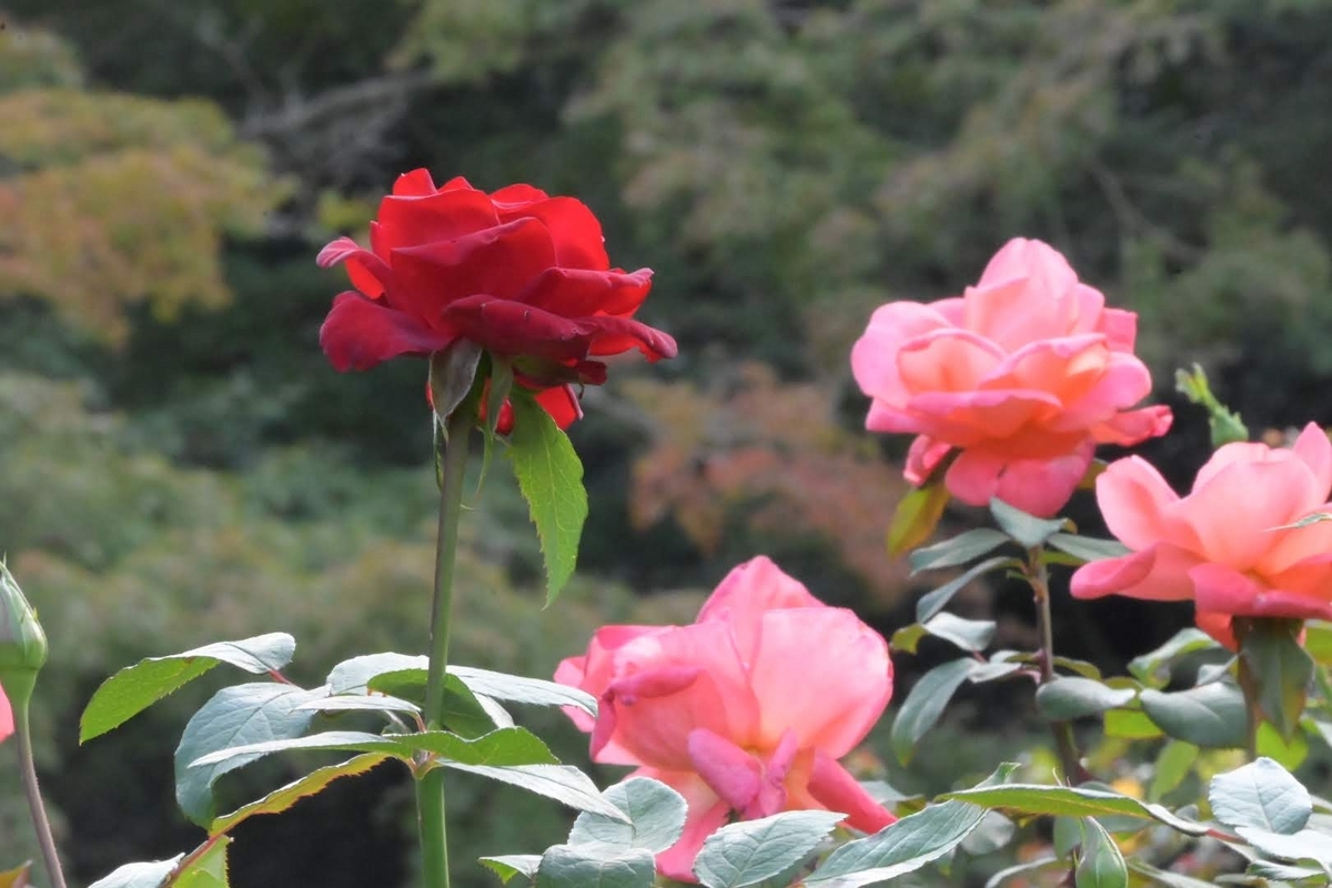 ↑薔薇の後ろに若干紅葉したカエデがありますが分かるでしょうか?