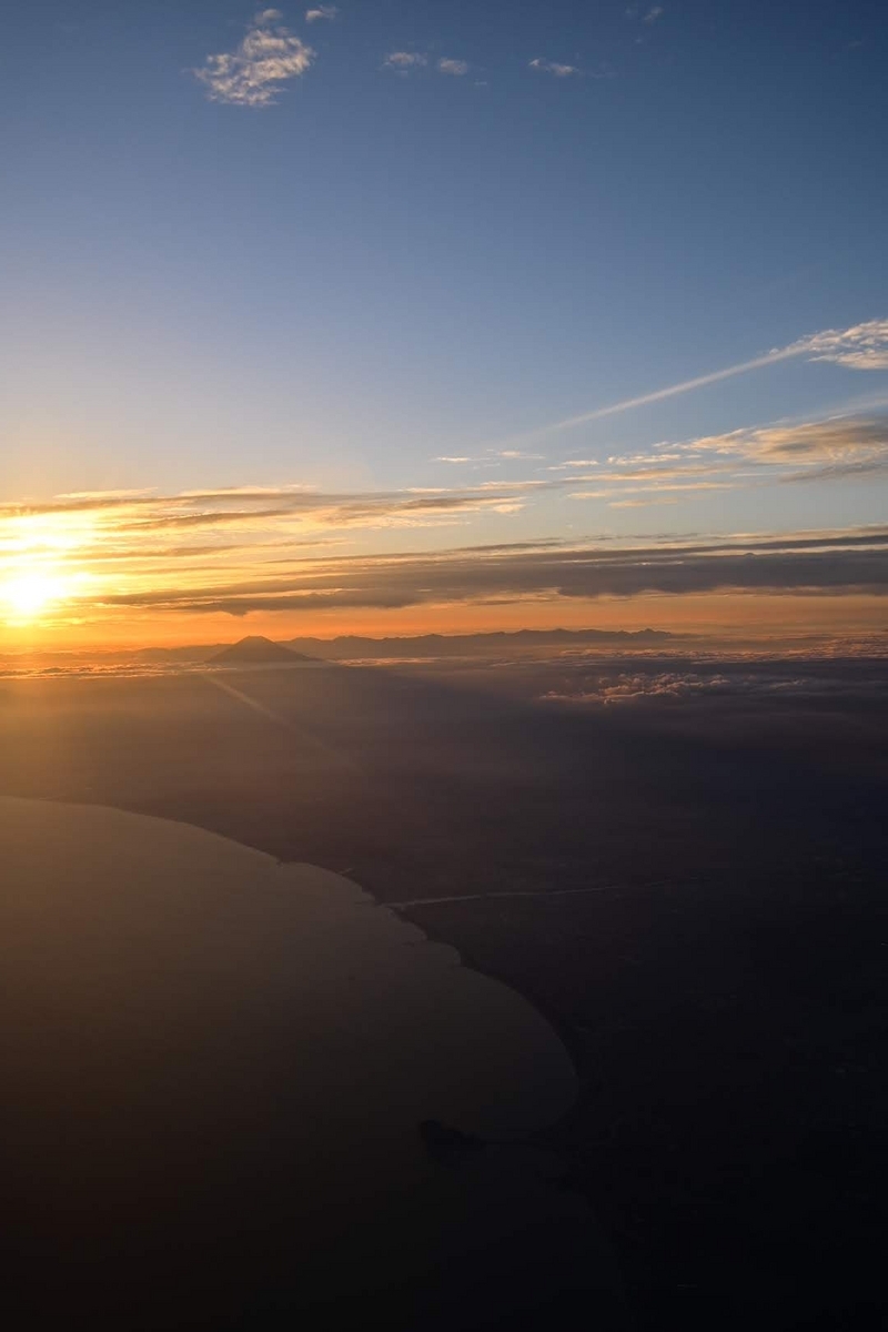 太陽の位置、夕方の富士山の見え方を予想して飛行機の席を予約します😊