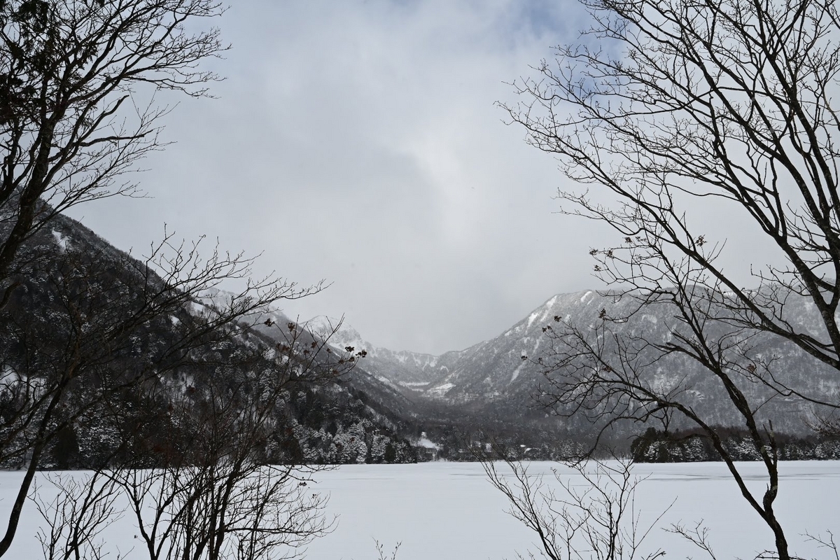 ちょっと移動して凍結した湖面からの撮影です。昔は奥日光、湯元エリアでは樹氷のような氷結状態を確認できましたが今回は全く確認できませんでした。