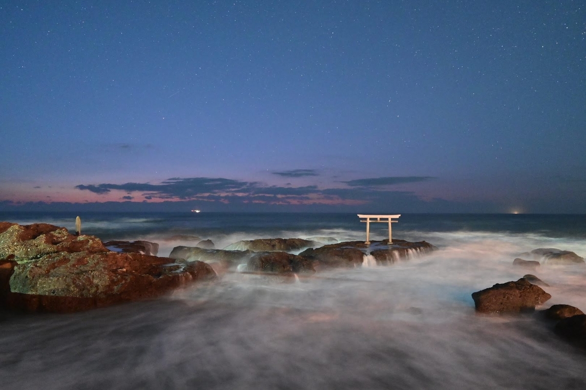 神磯の鳥居での撮影も天の川の時間が終わり空が明るくなってきました❗