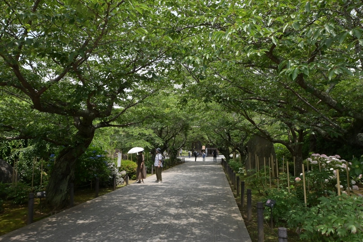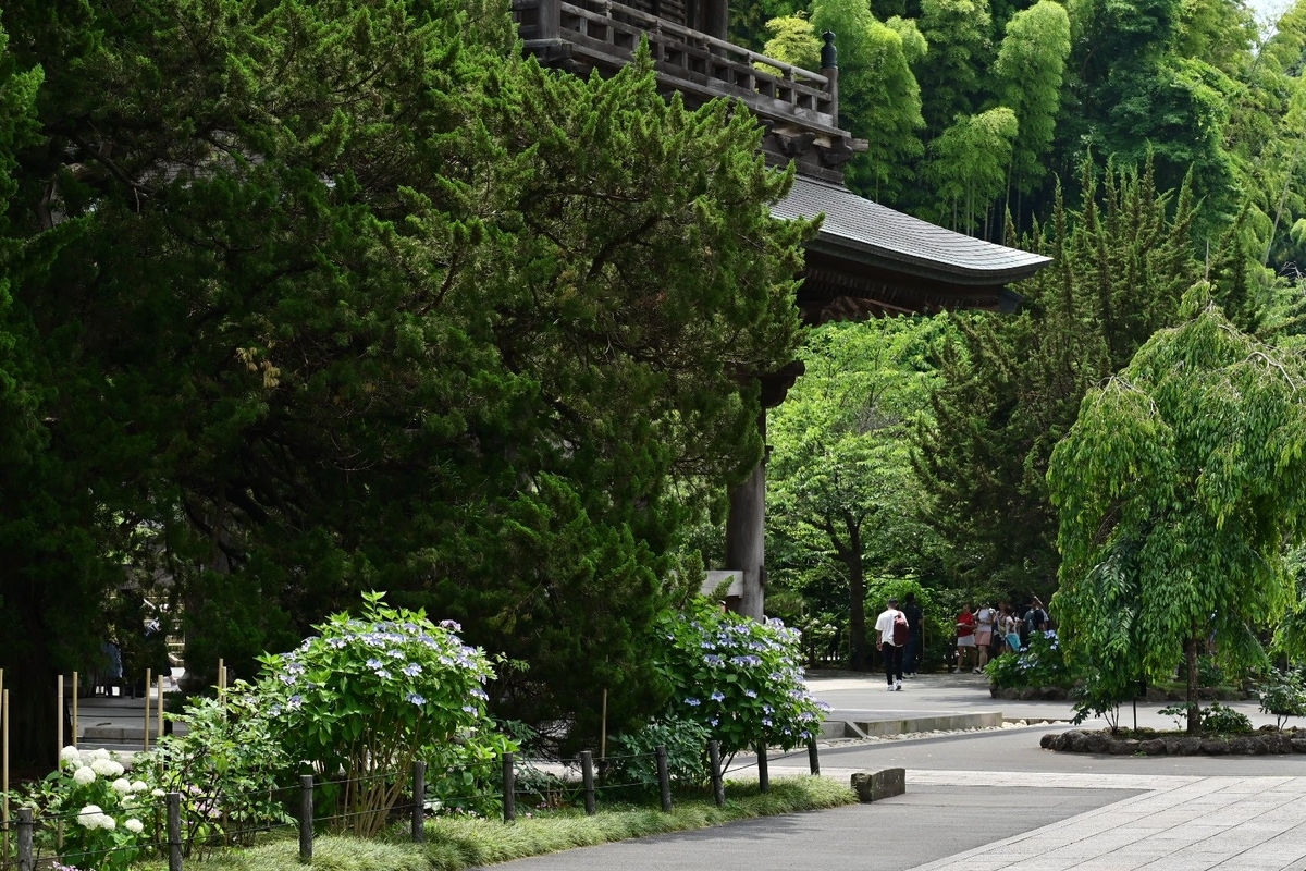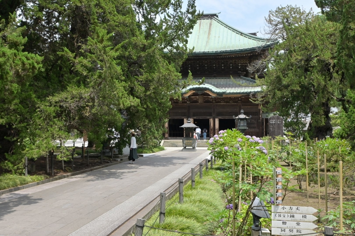 北鎌倉駅から徒歩15分程度の大きなお寺です。 紫陽花がちらほら美しく咲いてました。 |