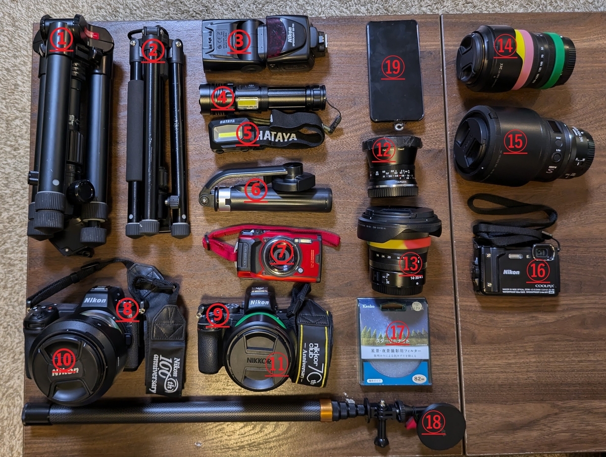②ミラーレス一眼(今回はNikon Z6III)は標準ズームがあれば十分・・というか交換するヒマがない。水辺で使いたくないので普通の方には不要なカメラでしょう