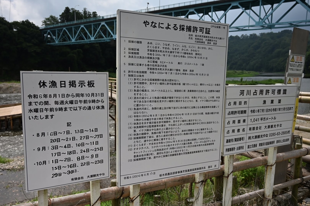 | 訪問場所 | 大瀬やな 栃木県茂木町にあるやな場です |