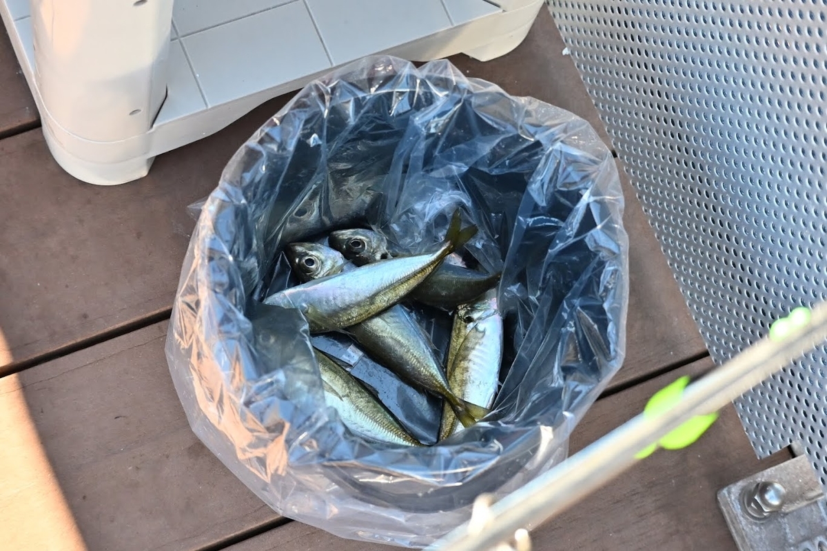ここでは誰でも簡単に釣ることができ、あっという間にアジ5匹を釣り上げました😊