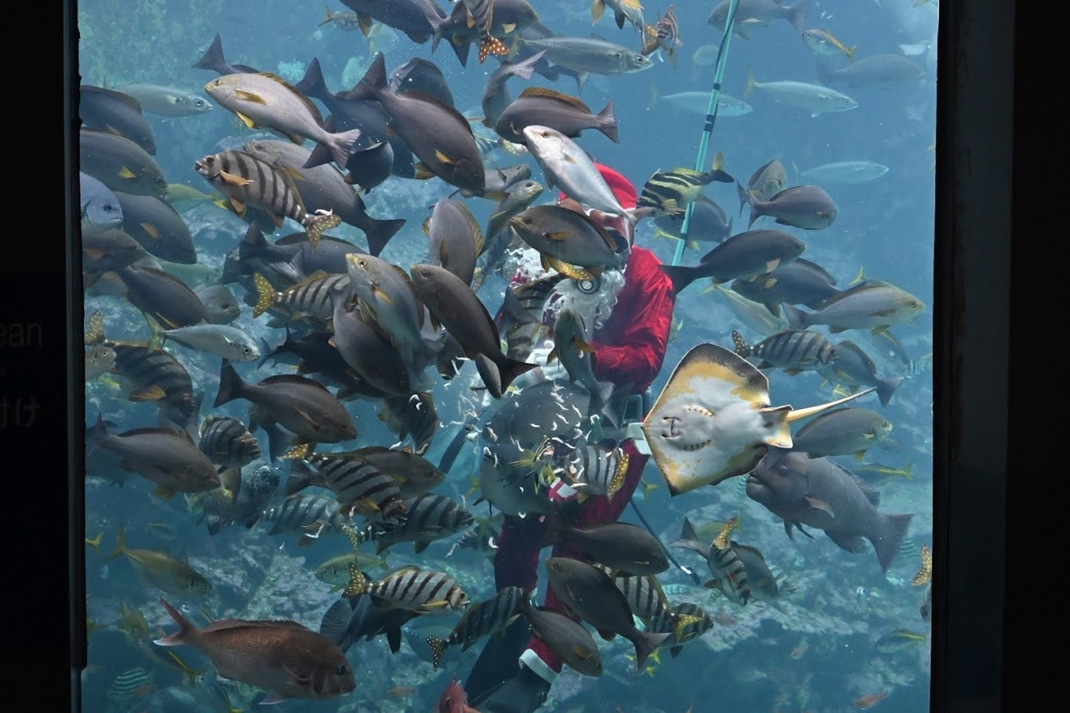 ではディスカバリーオーシャン(魚の餌付けショー)の様子です。