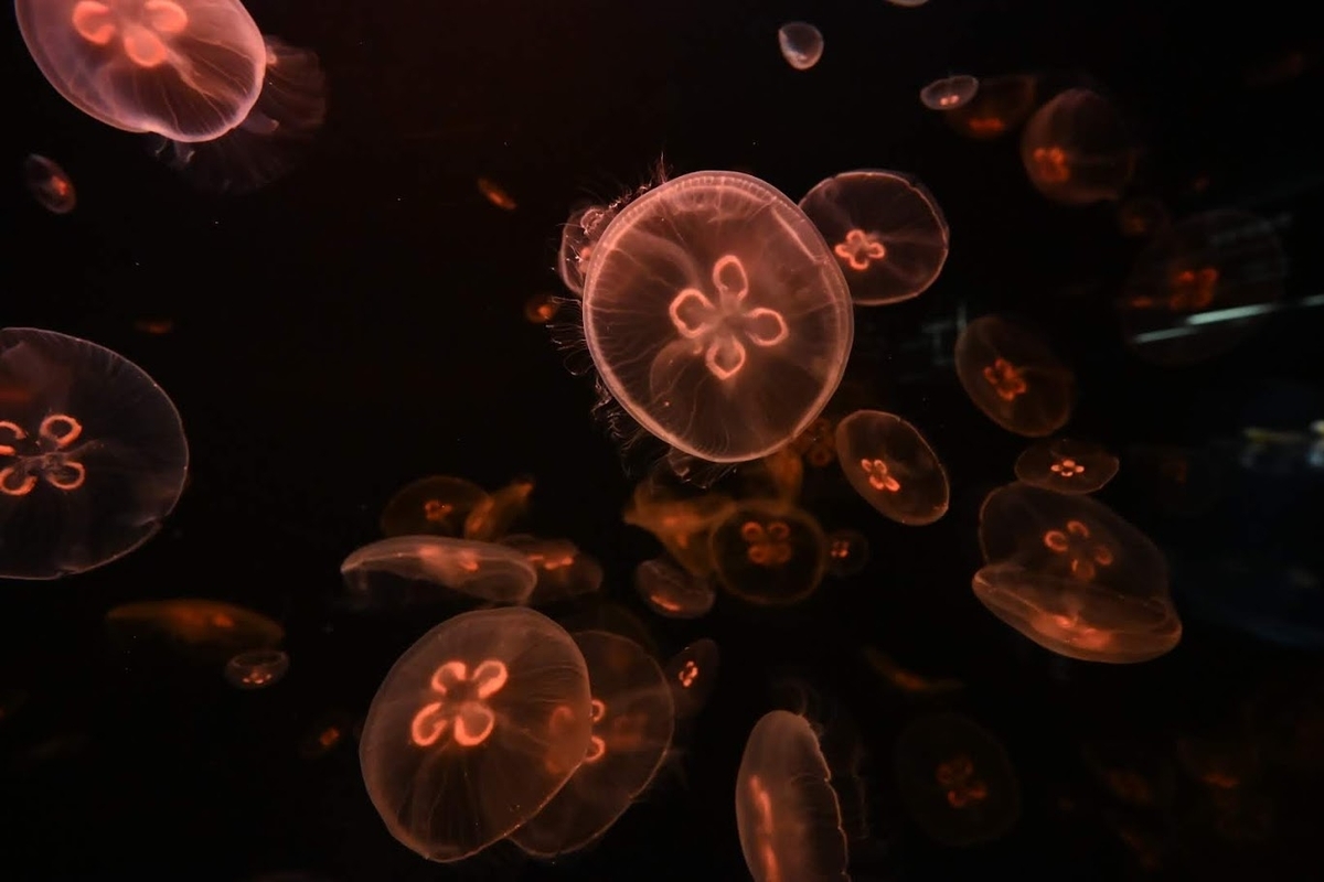 写真では分かりにくいですが発光する『カブトクラゲ』は美しい色が出ていました❗️