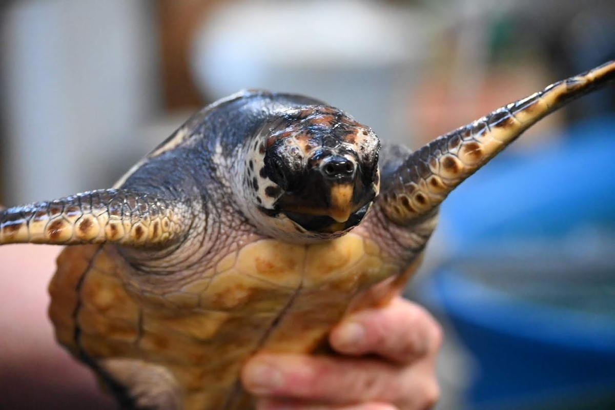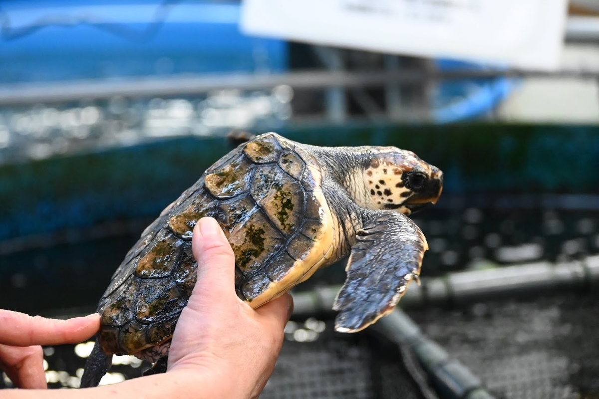 ウミガメさんをツンツンさせてもらいました❗️首が柔らかくて気持ちよかったよー😊