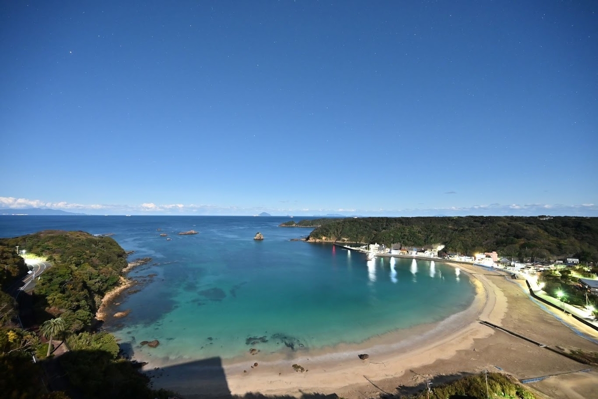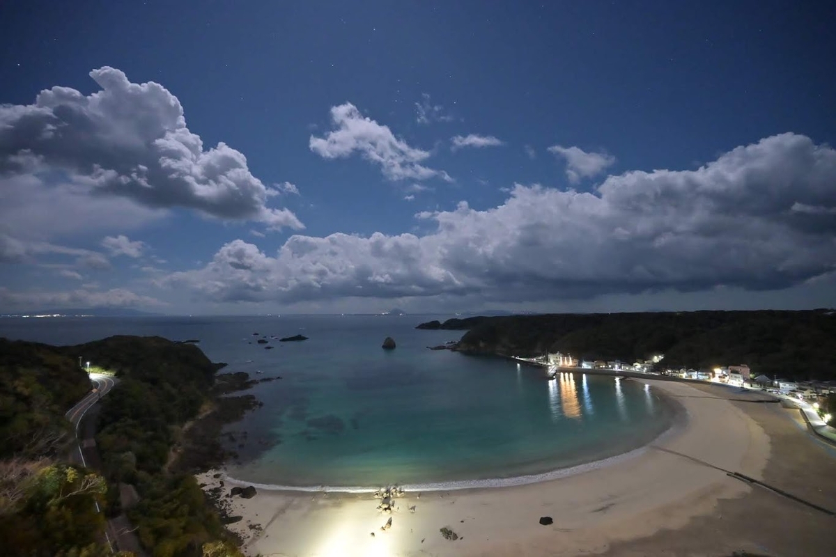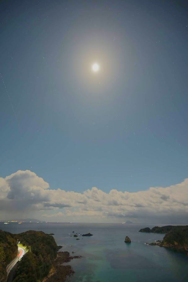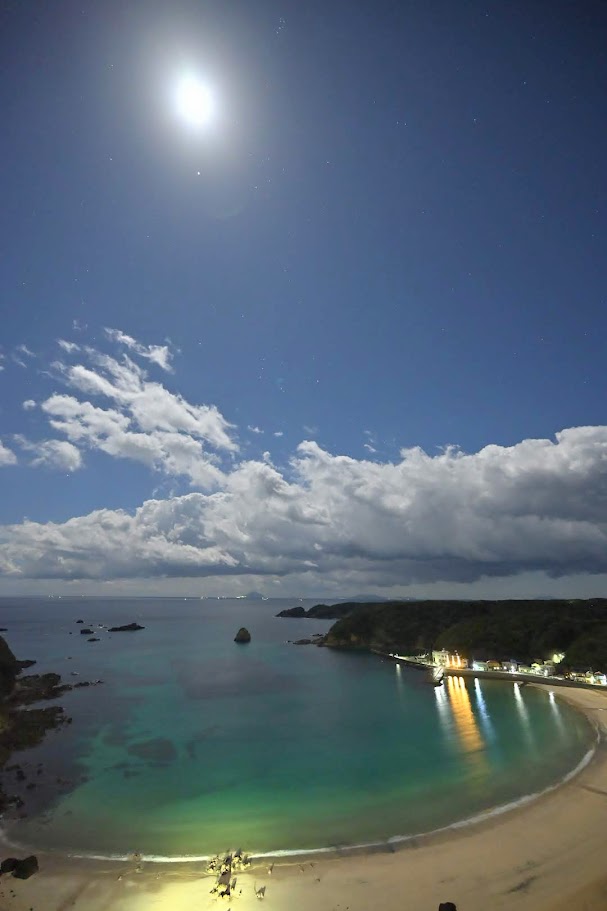 ↑まるで昼間ですがAM4時前の暗い中、月が移動して背面から浜全体を照らしています。