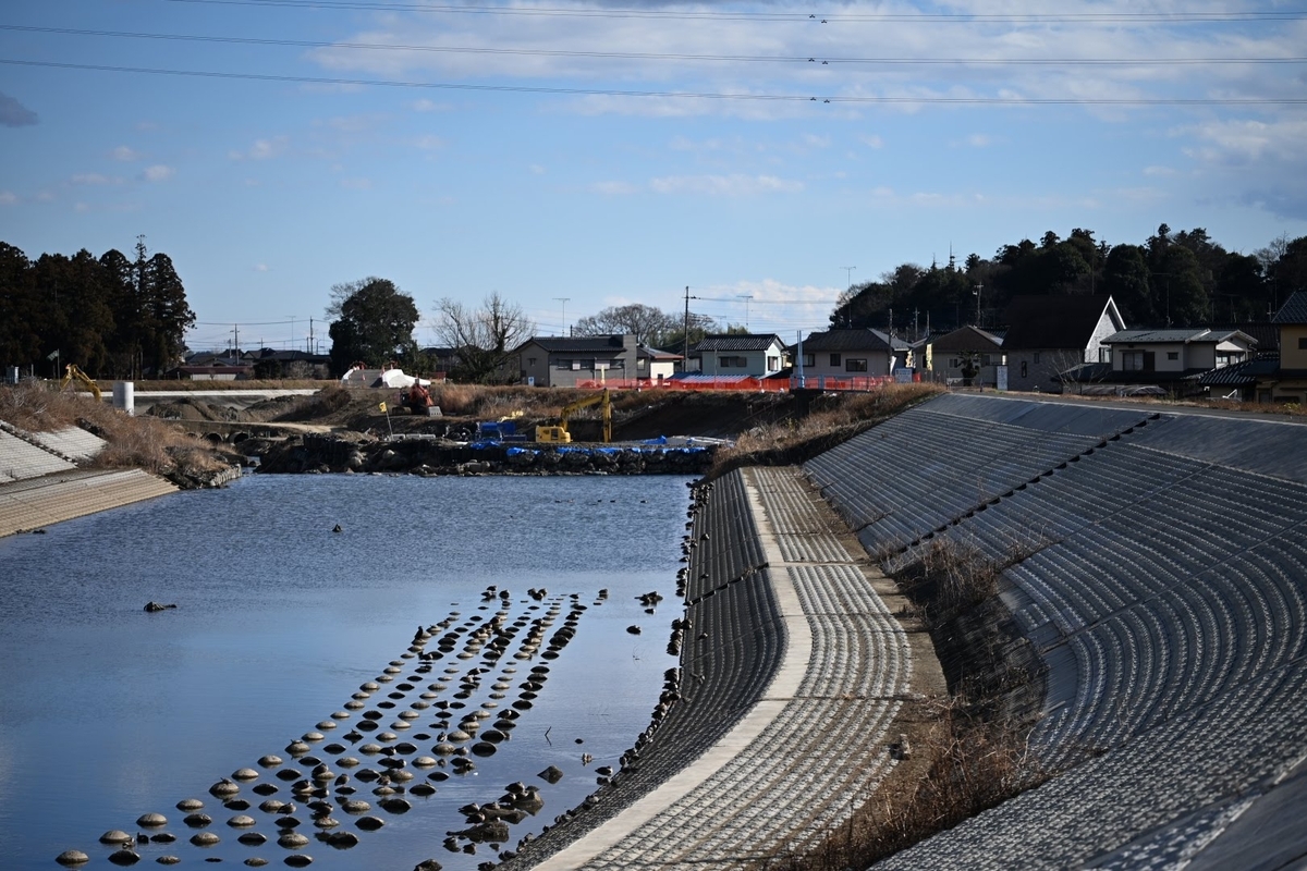 ↑5年前に栃木県の豪雨で決壊した川です。まだ落ちた橋の修復が終わってません。