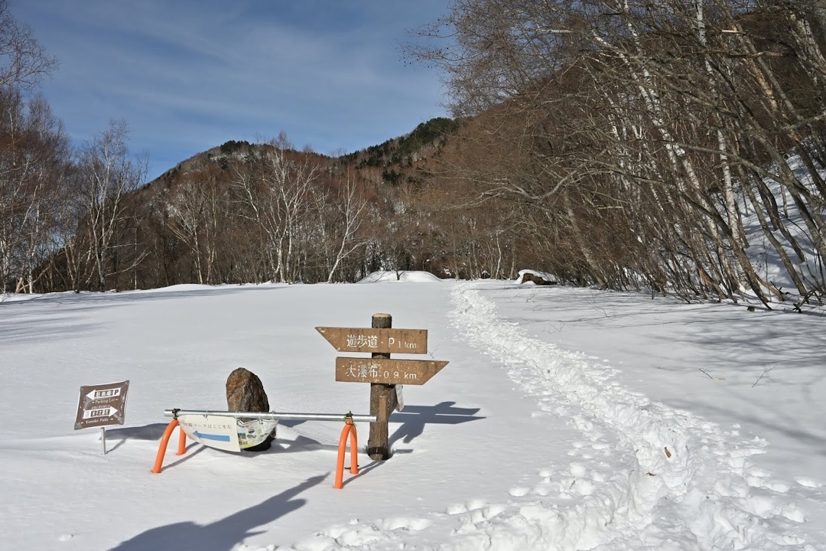 ↑途中の分岐点、『奇妙滝』方面に行くとアイスクライミングができるそうです(要予約?)