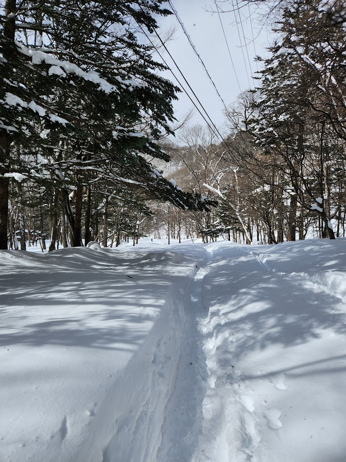 この時期、川に入って撮影する人はいないので川まで圧雪して道を作りました😊