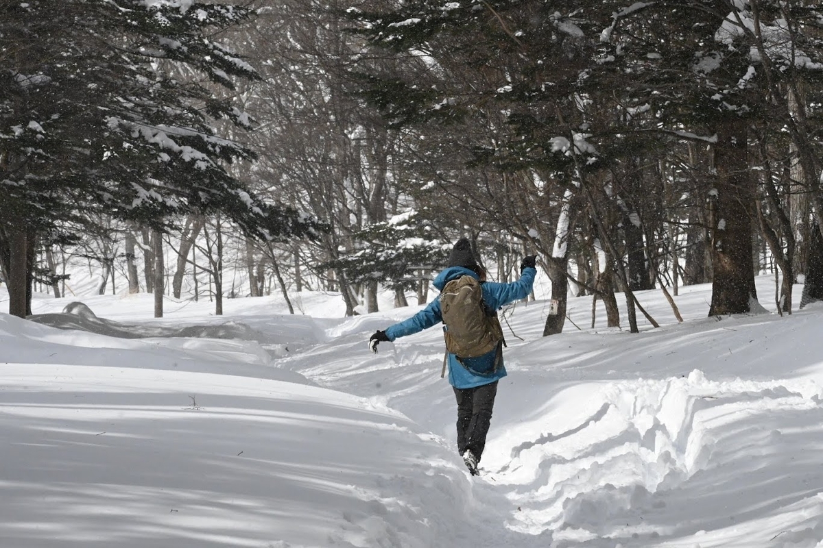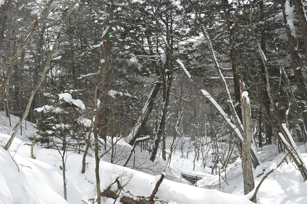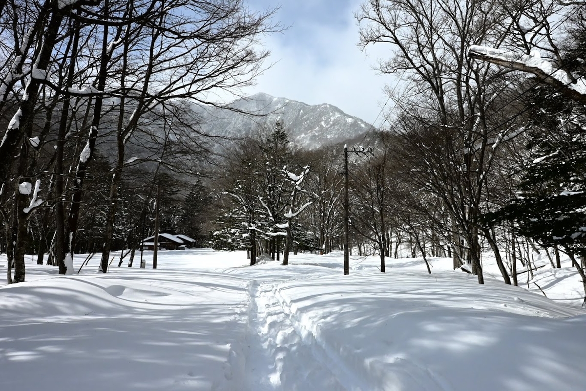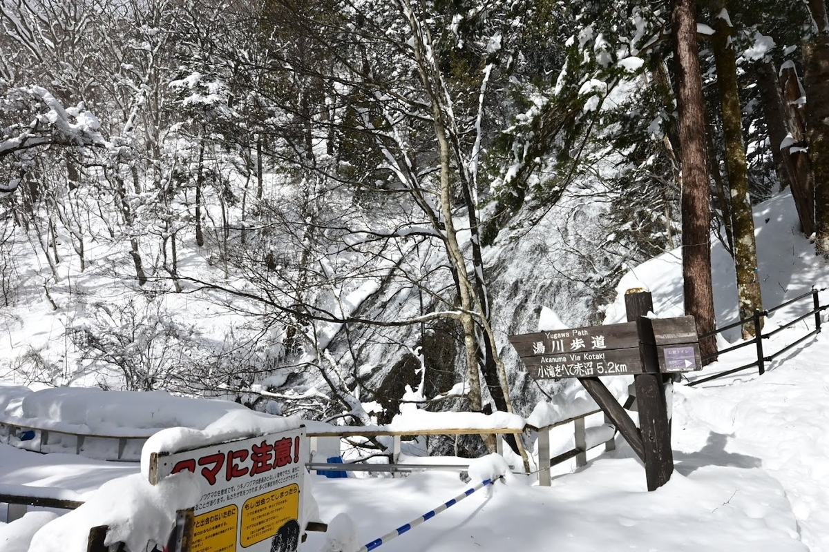 ↑訪問客が多いのかそれなりに道ができています。実際は湯滝までならスノーシューがなくてもほぼ問題なく訪問できそうです。