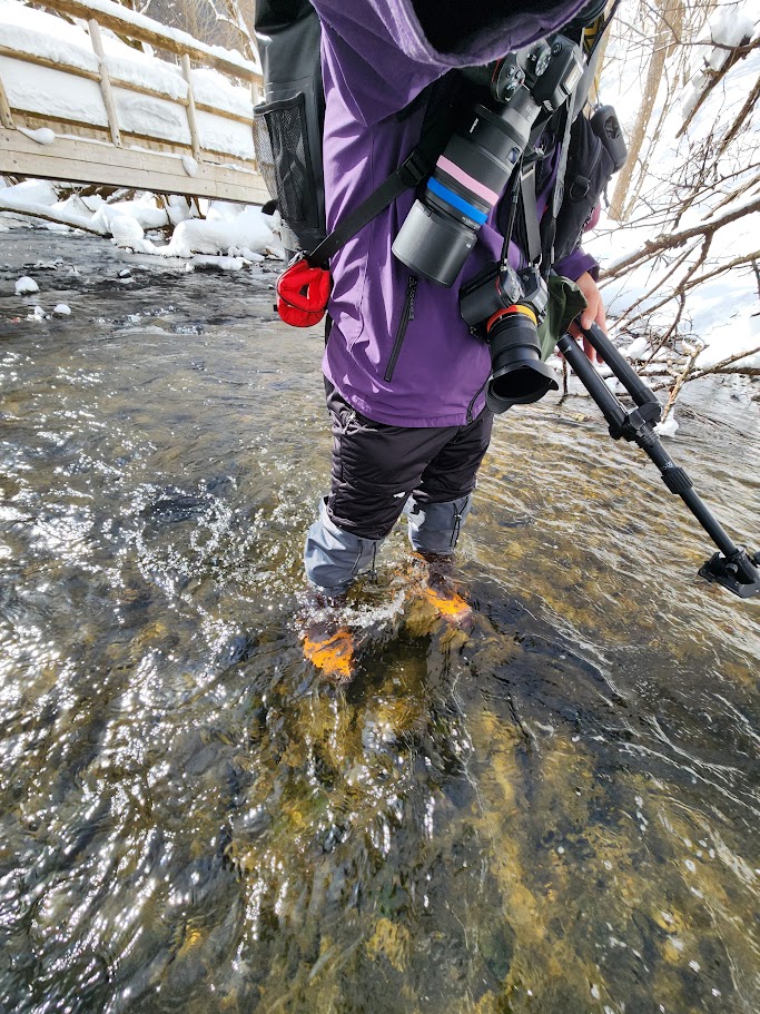 ちなみに最近、雪山には釣り用長靴で訪問しているので水の中でもへっちゃらです❗️
