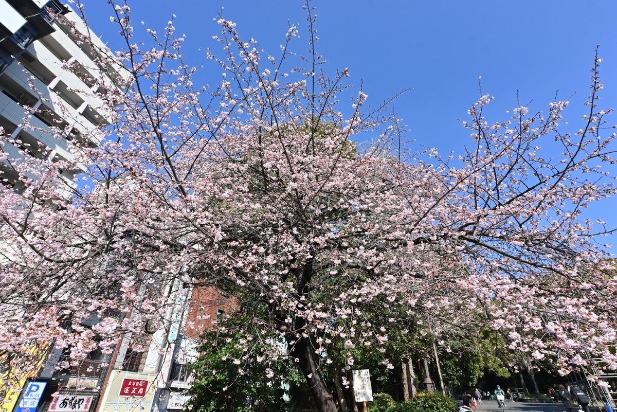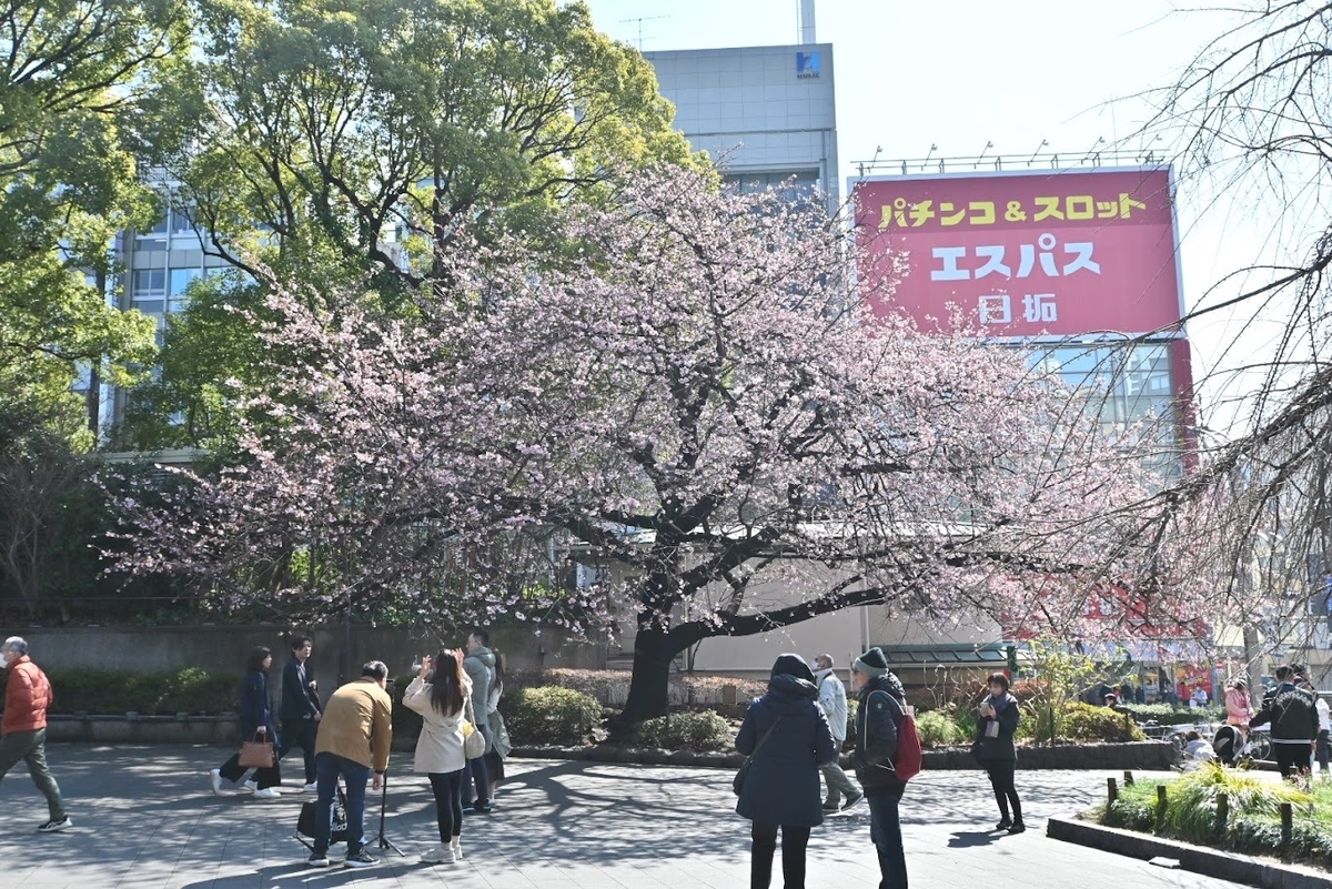 京成上野駅付近の公園入口で早咲きの桜が見頃になってきました❗️ |
