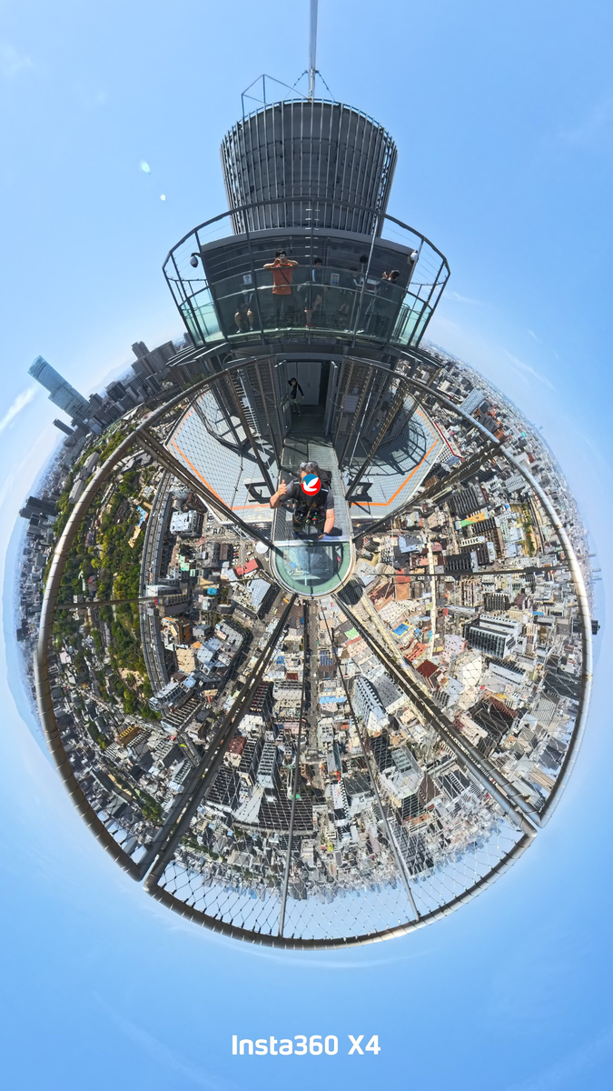 おーすげー❗️跳ね出し展望台「TIP THE TSUTENKAKU」で360°カメラ撮影が楽しそうだ😊