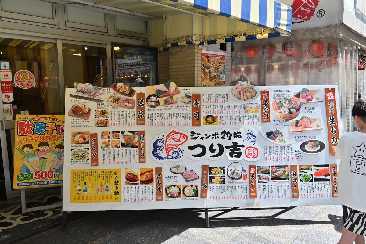 前回の通天閣から新世界で昼食を取ります❗️今回は息子のために『ジャンボ釣船つり吉 新世界店』で釣り体験をするのが目的です💡
