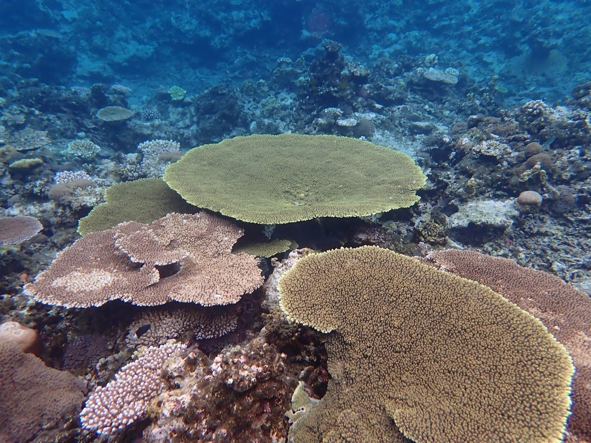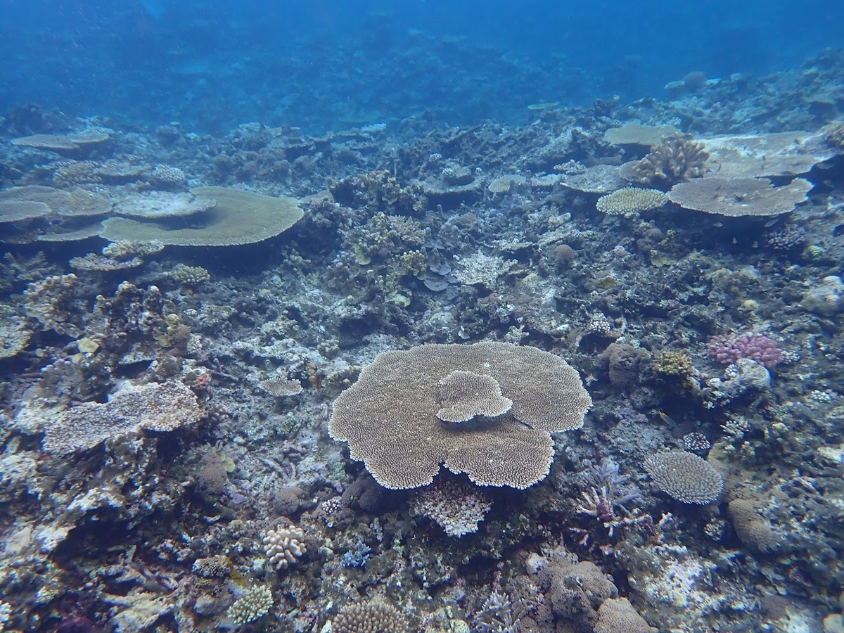 天気が悪く光量が足りないのでクリアな感じで撮影はできませんが思ったより綺麗な珊瑚です😊