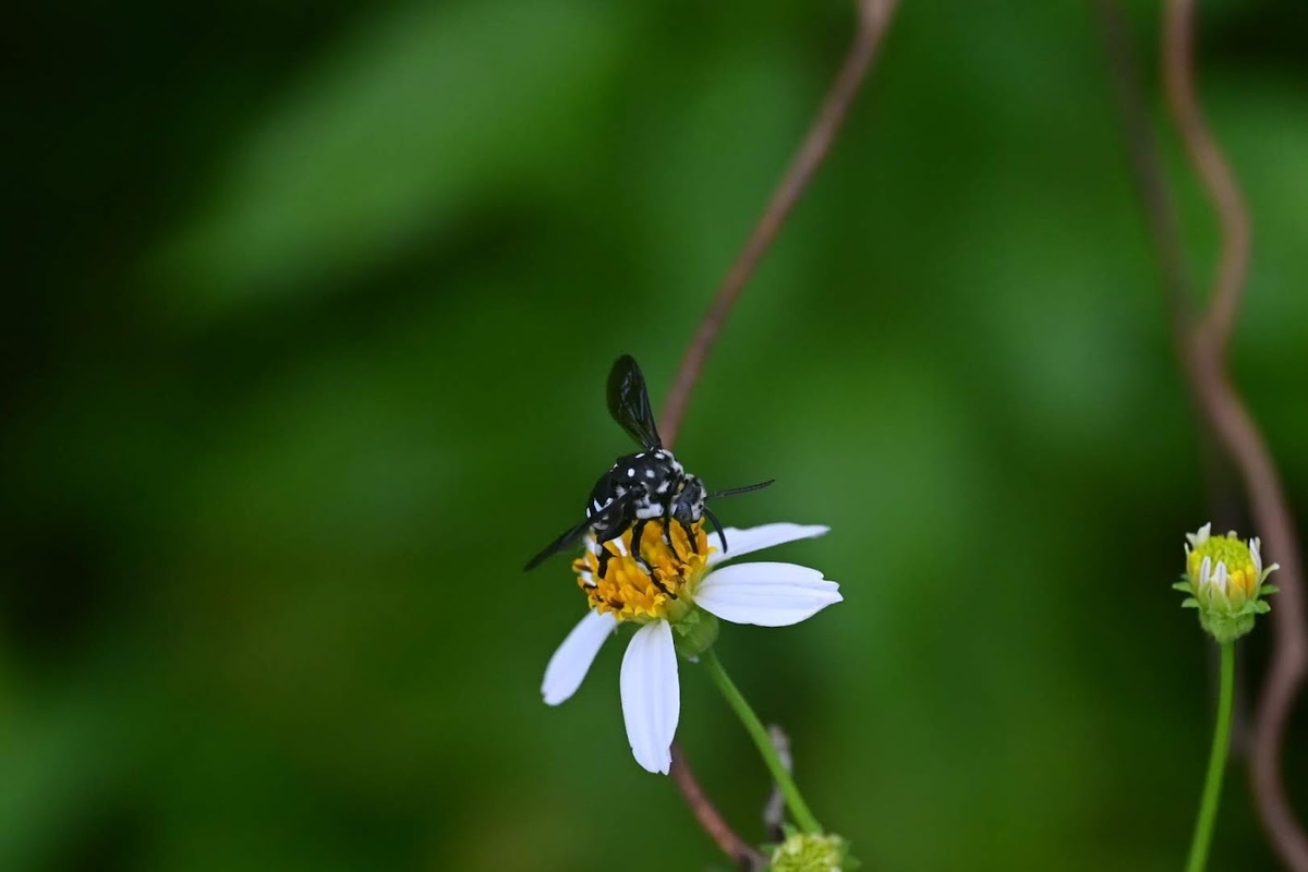 まずは何も考えずにそこらへんにいた蜂を撮影しましたが・・『ルリモンハナバチ』、種類によってはブルービーと呼ばれる希少種だったみたいです😊