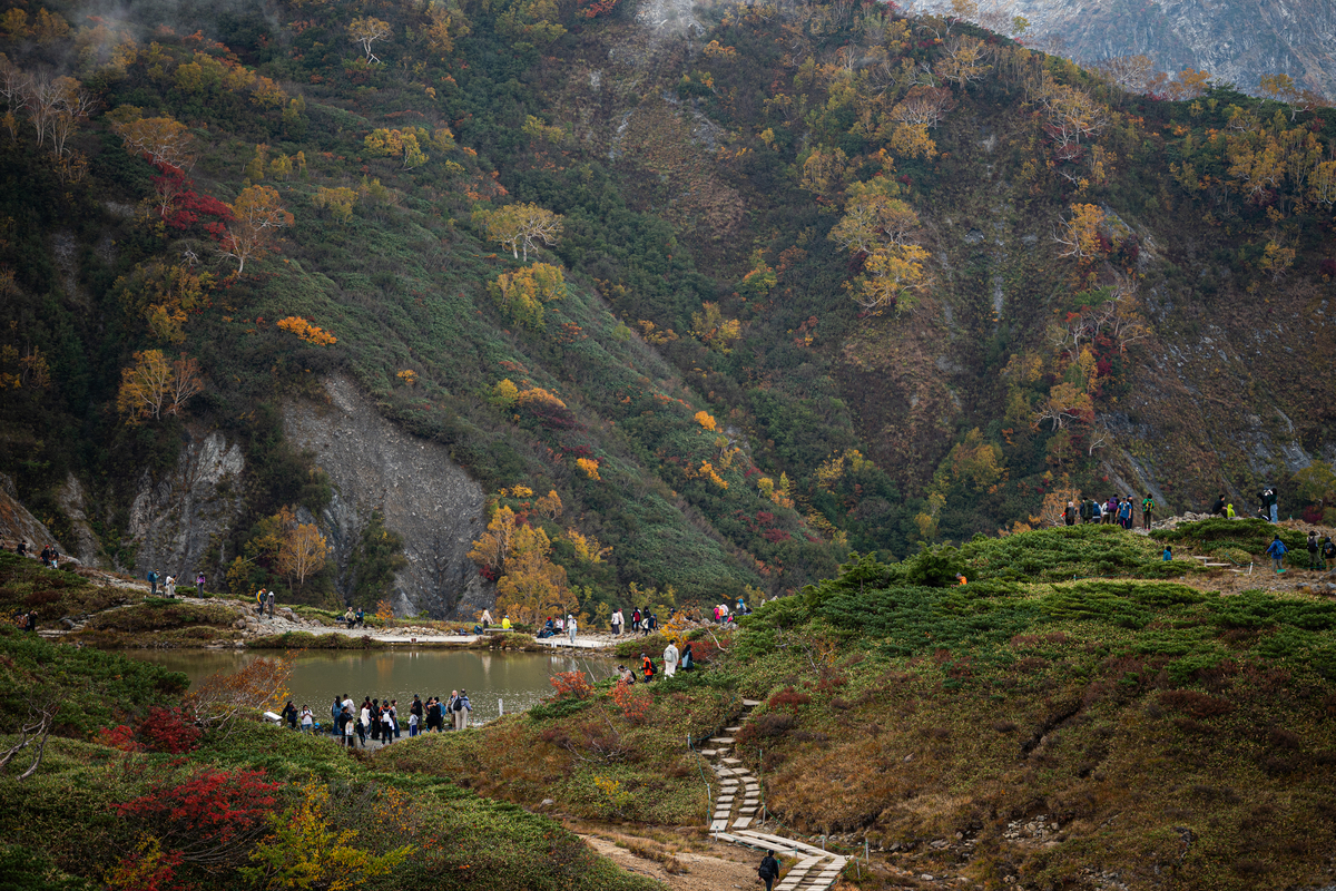 八方池周辺の紅葉は渋い感じでとても美しい❗️